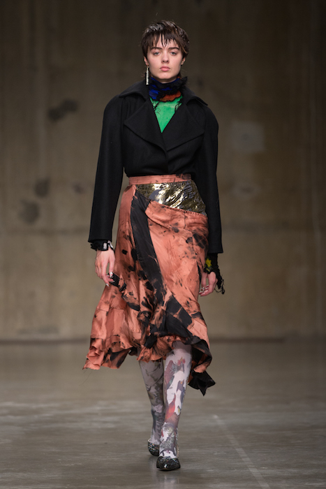 Mimi Wade is a British American designer in her third collection with Fashion East and her catwalk debut. Inspo? “Old School Glamour, Hollywood films and powerful female protagonists- including her starlet grandmother “Granny Pammy.” (Central Saint Martins). (@mimi_wade).