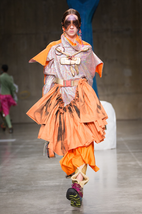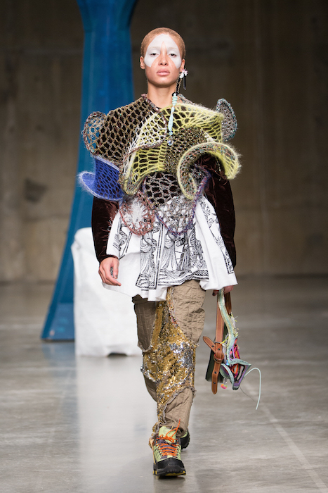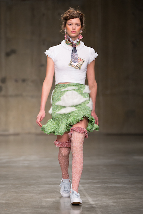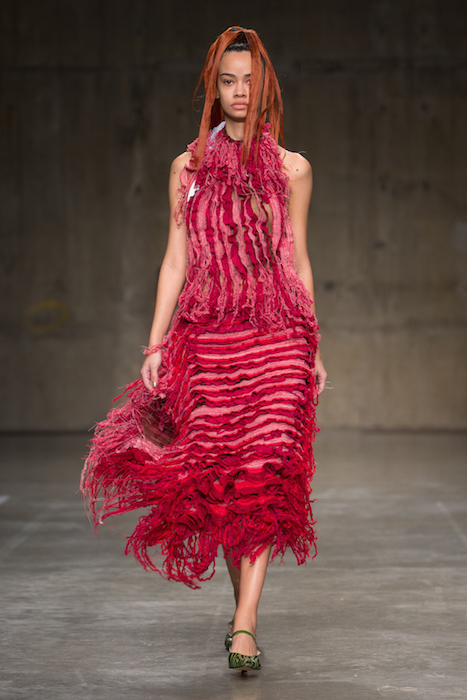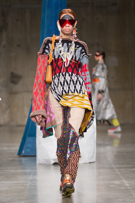 Emerging talent on the other side of the pond. Keeping it fresh and quirky, Fashion East FW17 London presents Mimi Wade, ASAI, Matty Bovan, and Supriya Lele. From the pink panther kitsch to multicolor cheeky and shredded, the London Fashion Week runway is serving up the pop. Here’s a glimpse of the young and the fabulous.