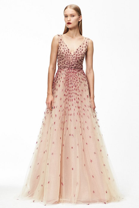 Now that the pre collections for fall are in full bloom, we took a look at some gowns for the early fall occasions. Some are red carpet worthy, some better for modest yet very special affairs. Though many of the collections for this pre-fall 2015 season were mostly practical, some noteworthy WOWs are in order from Carolina Hererra, Reem Acra, and Monique Lhuillier. We threw in some modest-in-volume silhouettes from Dsquared2 for the special nights out in between hot and freezing weather. A few favorites from pastel tones to jewels..