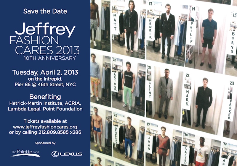 Not only will you be treated to a fashion show, silent auction, and a serene night of cocktails, but you will also help support organizations such as The Hetrick-Martin institute (HMI), AIDS Community Research Initiative of America (ACRIA), Lambda Legal, and The Point Foundation. Former attendees have vied for delectable auction items from Dolce & Gabbana, Prada, Gucci, Diesel, Etro, and Louis Vuitton. If past success is any hint, Jeffrey Fashion Cares is definitely starting a new decade out right. Written by Mary Anderson.