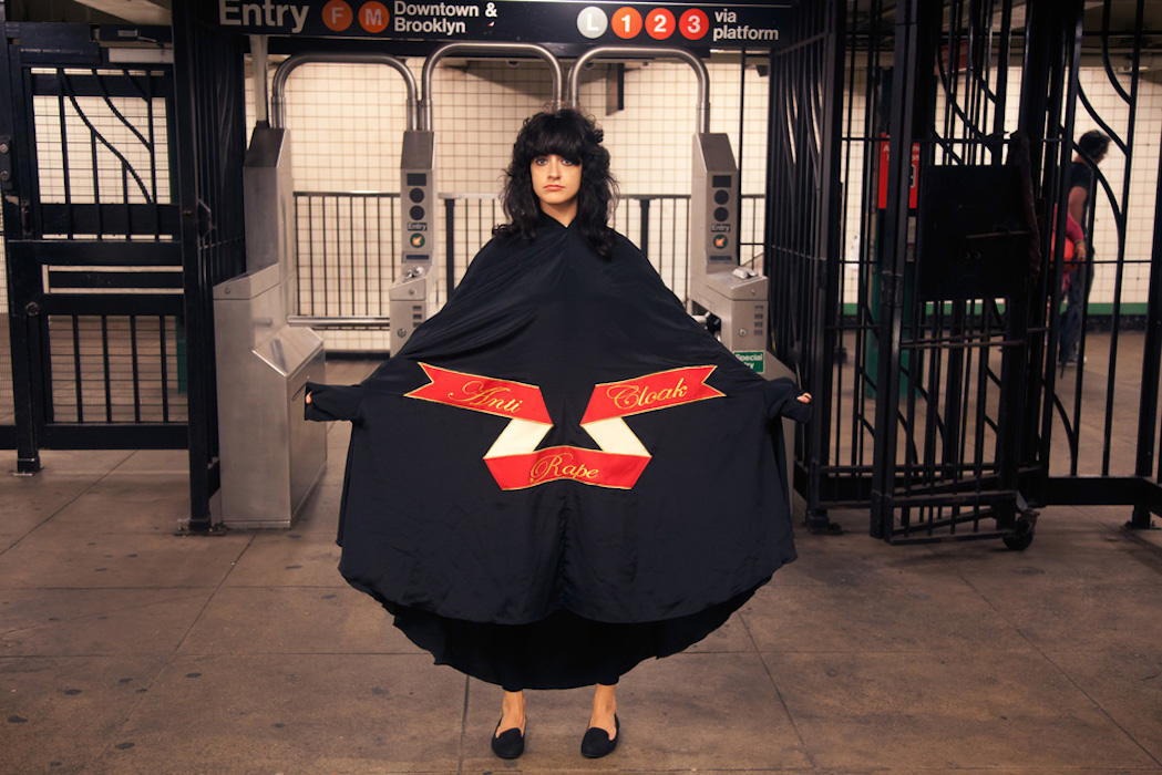“Subway Cloak” Artwork by Sarah Maple, “THOUGHTS AND PRAYERS” Solo Exhibition, The Untitled Space, January 2019