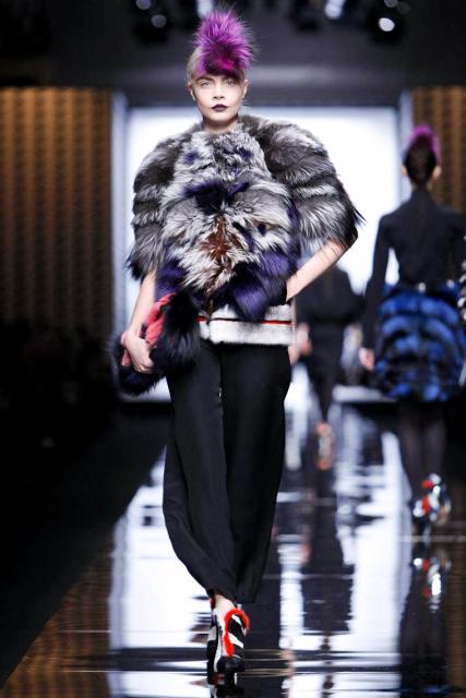 Father of fashion Karl Lagerfeld celebrated his 96th collection created for Fendi with this AW 2013 collection during Milan Fashion Week on Feb. 21, 2013. Of course, the only way Karl Lagerfeld knows how to do it, is big. He knows how to turn heads ever so quickly, with fashion that continues to wow us in one way or another each season, and Fall 2013 was no exception. Lagerfeld conceived an enticingly flamboyant capsule yet again, even to keep one warm when cold breezes roll by. This exquisiteness adorned every look in elaborate pieces that were absolutely stunning, and Karlie Kloss and Cara Delevingne definitely strutted the colossal pieces right on the catwalk.