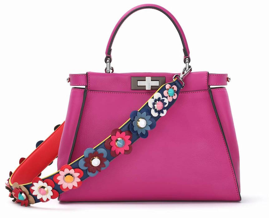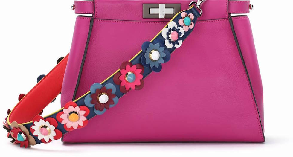 The cutest thing: A strap for your bag with flowers x FENDI ss16 Flavor, about to launch Sept 25 after today’s runway show debut ! The new variations with leather, python and multicolor stud versions since the first release for resort 2016.