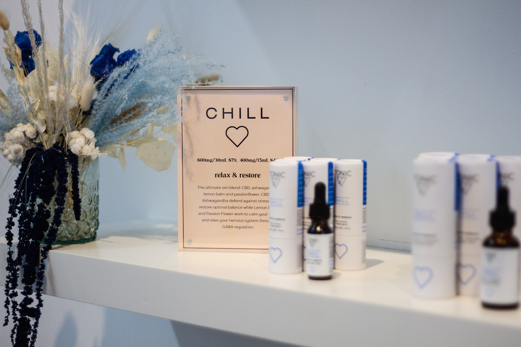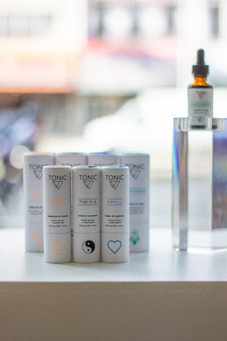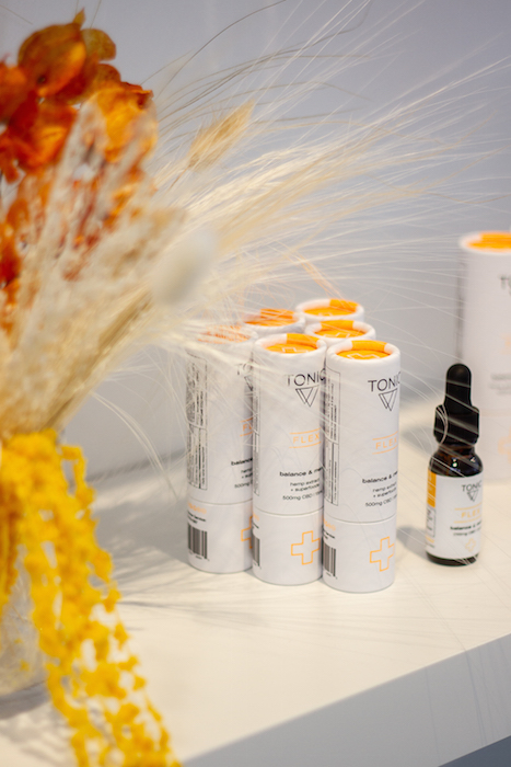 from the editor: I was looking for relief from my migraines after an acccident, as well as keeping the mood chill, grounded and of course, to sleep better. One of the big promises of CBD is reducing inflammation and stress, which seems to be every single person’s problem. What I found out at the TONIC pop-up is that I can add a few drops of CBD oil in my drink (even soda), take it orally, or put it right on my skin if I have a wound. – brigitte segura