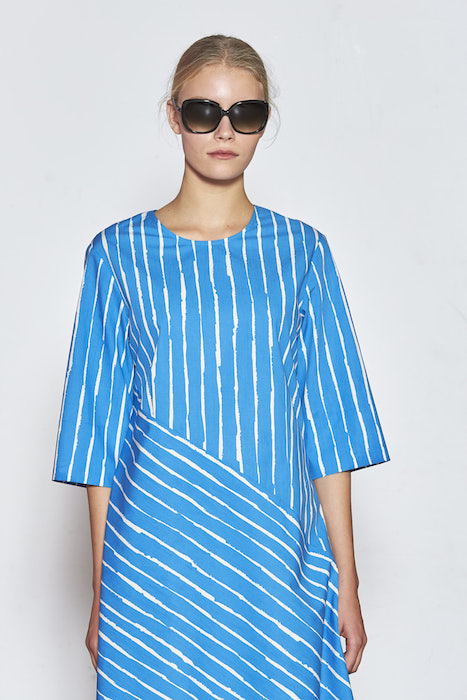 Stripes throughout the collection marks the 50th anniversary of one of Marimekko’s most beloved iterations, Tasaraita (evenly striped) for 2018. In 1968 Annika Rimala created a new symbol for the era of unisex with this pattern, representing equality before it was trending. For spring 2018, Tasaraita is now in woven cotton.