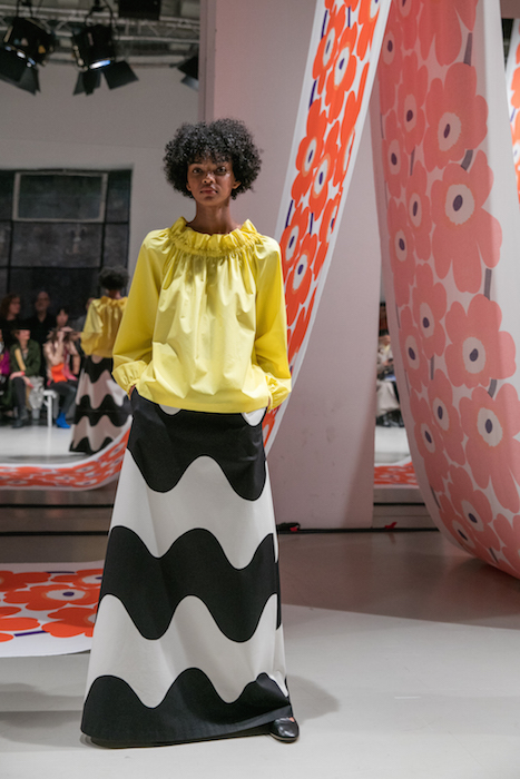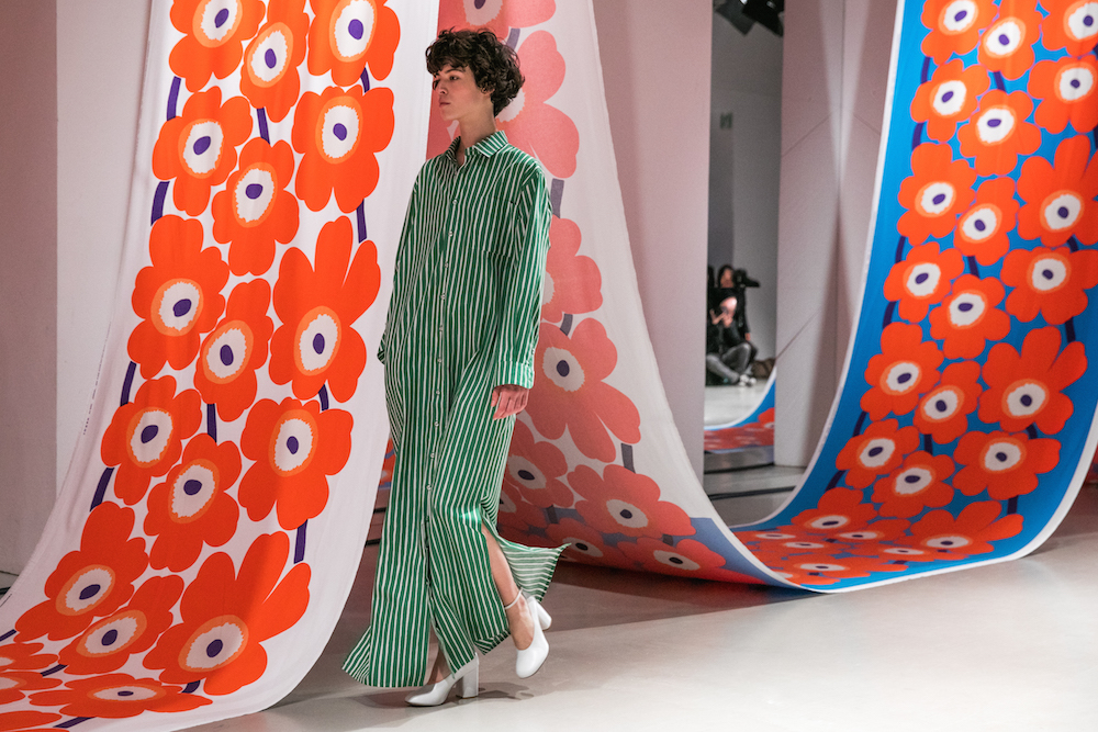 I’ve been a flower lover since I can remember, and though I’m consistently seen wearing black, the truth is I love surrounding myself with color + patterns. One of my favorite ways to dip into at home has been surrounding myself with Marimekko patterns, as the Finnish design house’s art of print making has always added a cheer to my life. Of course I got flower happy seeing the ready to wear collection + accessories that were just shown on the Paris runway, at Palais de Tokyo.