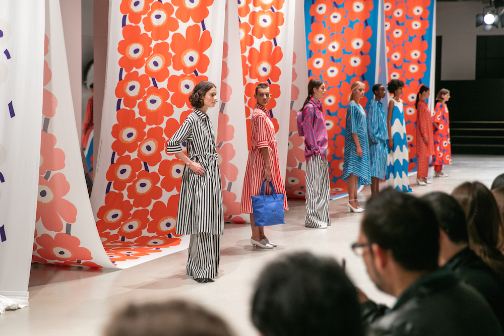 Drawing on the brand’s very essence, the art of printmaking, the collection bursts with iconic archive patterns from the 1950s and 1960s. Created by original Marimekko designers Maija Isola and Annika Rimala, the collection was fused with contemporary prints by young designers, complementing each other for a collection inspired by personal growth stories and Marimekko’s rich heritage.