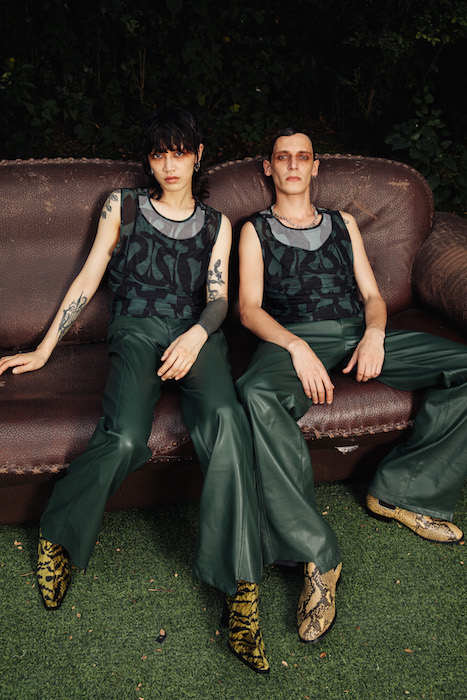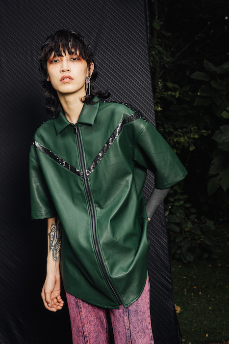 Fun, Forward, fabulous! ‘A Dose of Nature’ DIRTY PINEAPPLE ss22 capsule delivers Fresh style to everyday wearable, Hot green leather, pink punked graphic T, moody city vibes.