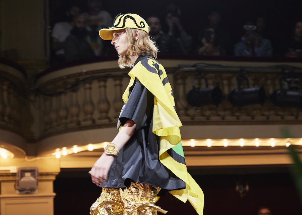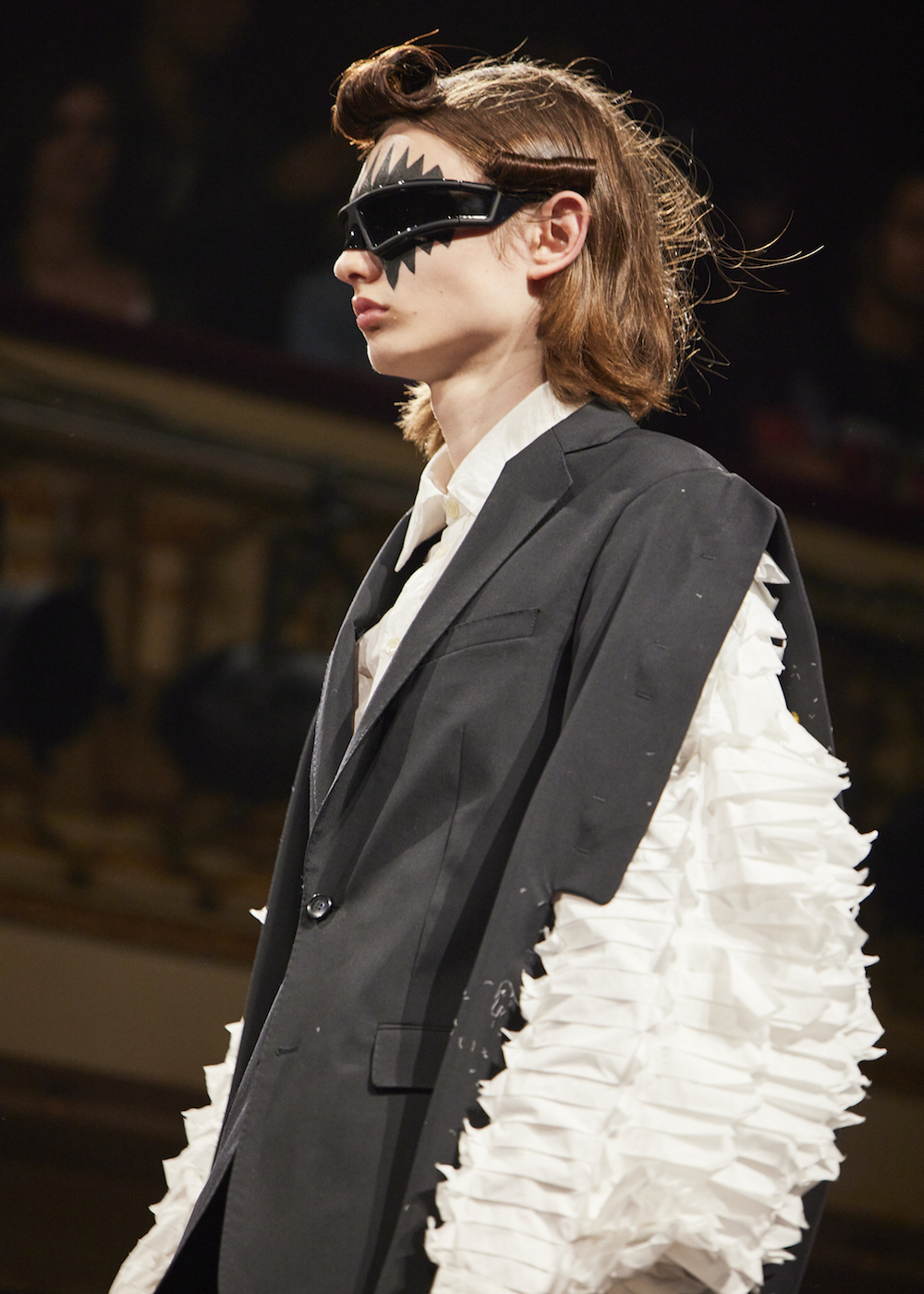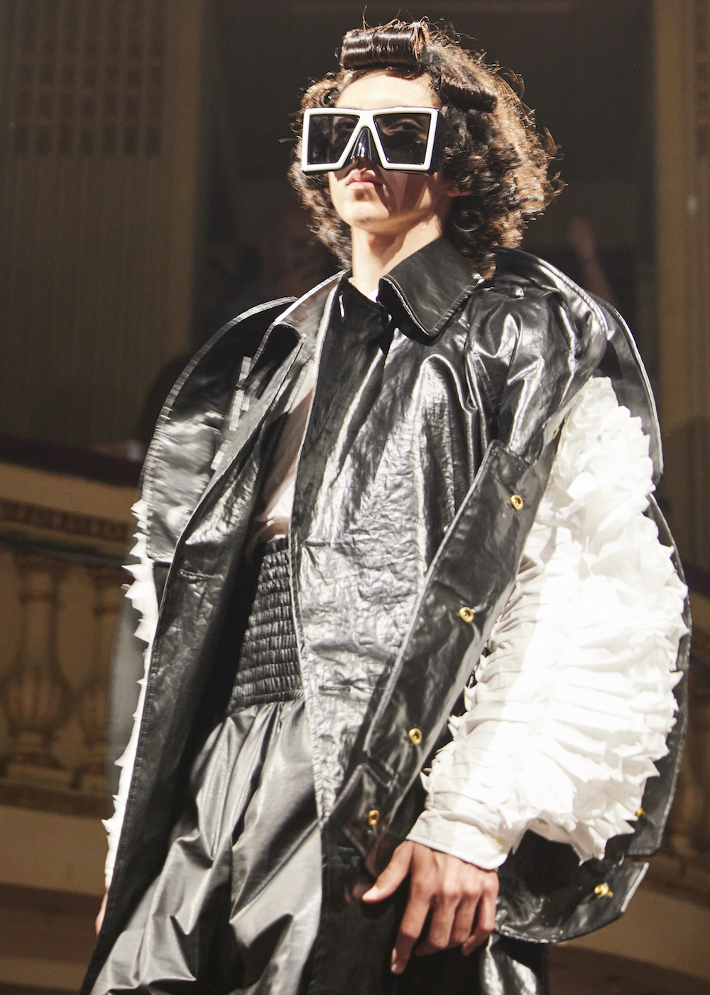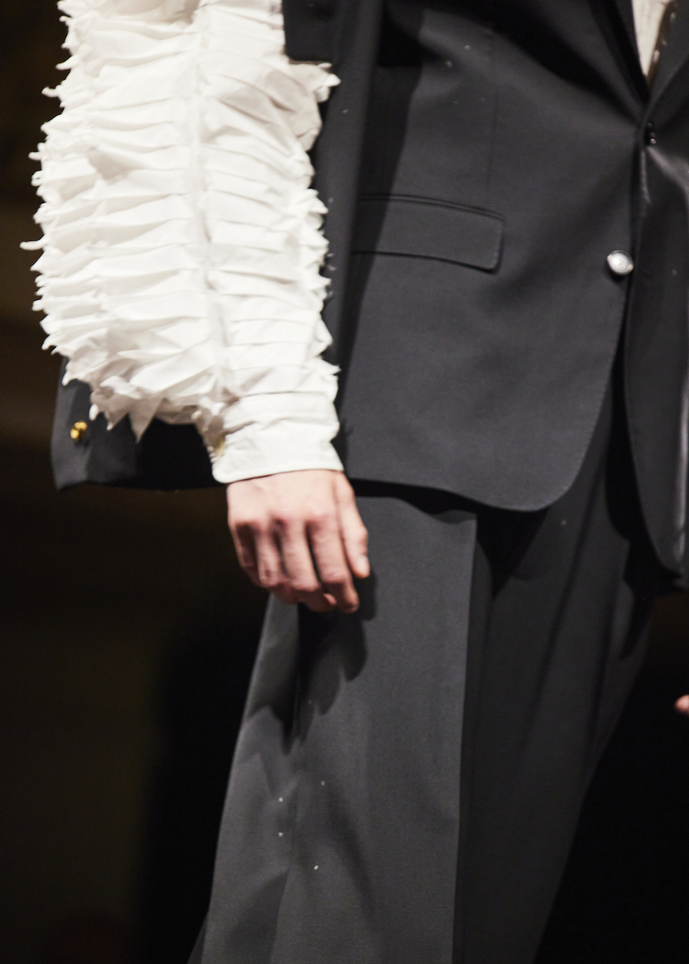 A Haute look at Beirendonck’s voluminous creativity and details flaunting the tailoring of UNISEX sportwear with attittude. Ruffled sleeves and all that GOLD were some of our favorite details..
