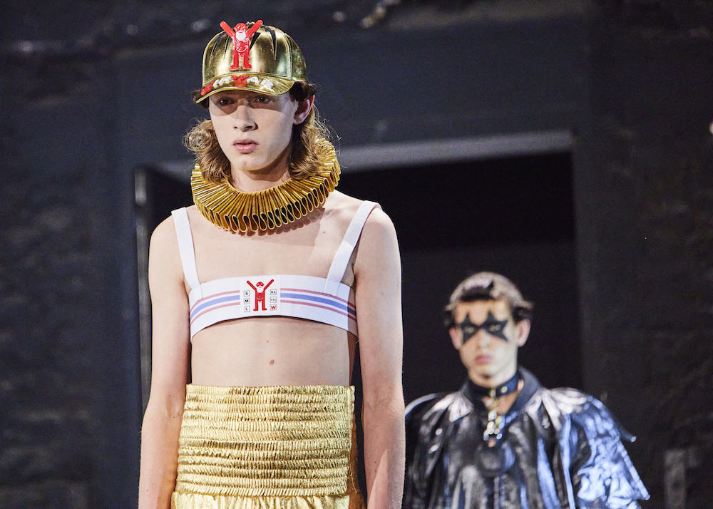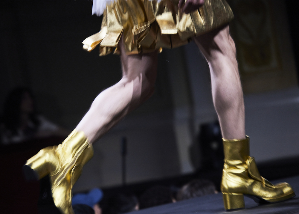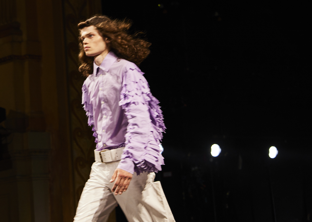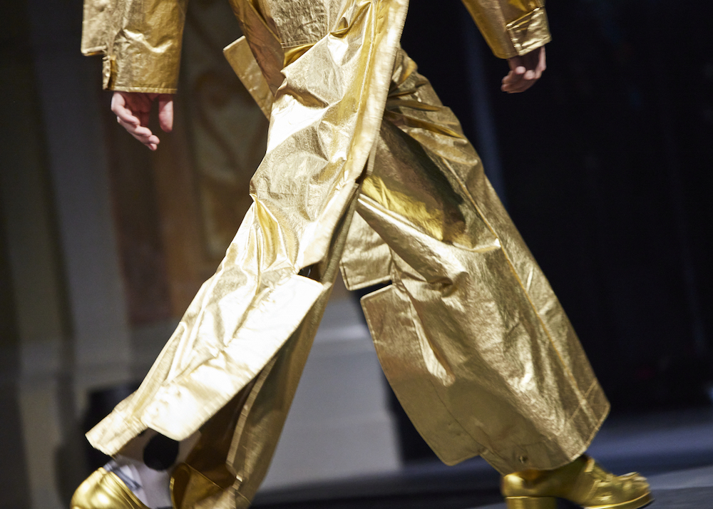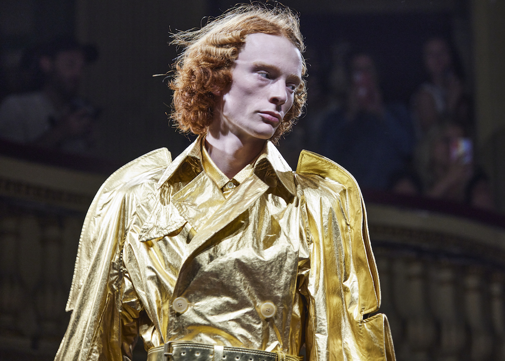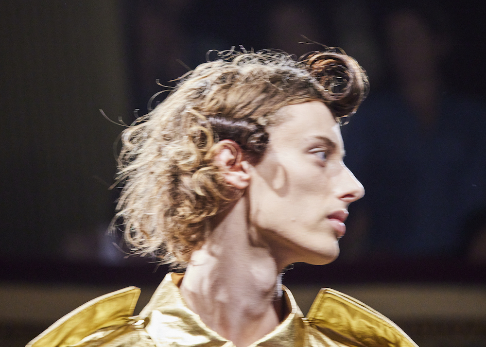 A Haute look at Beirendonck’s voluminous creativity and details flaunting the tailoring of UNISEX sportwear with attittude. Ruffled sleeves and all that GOLD were some of our favorite details..