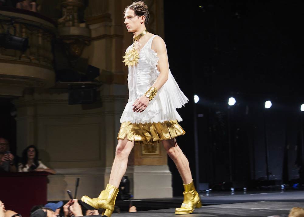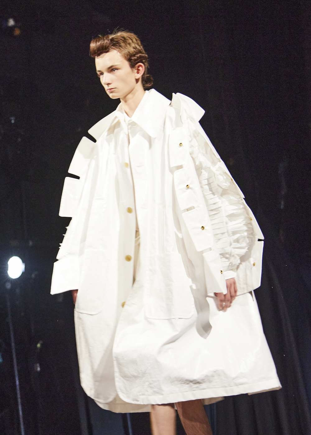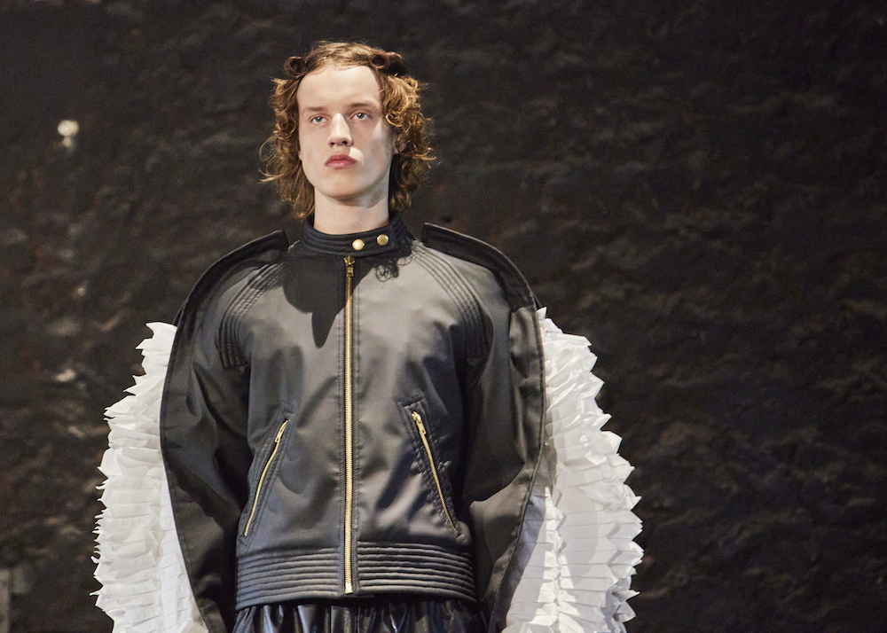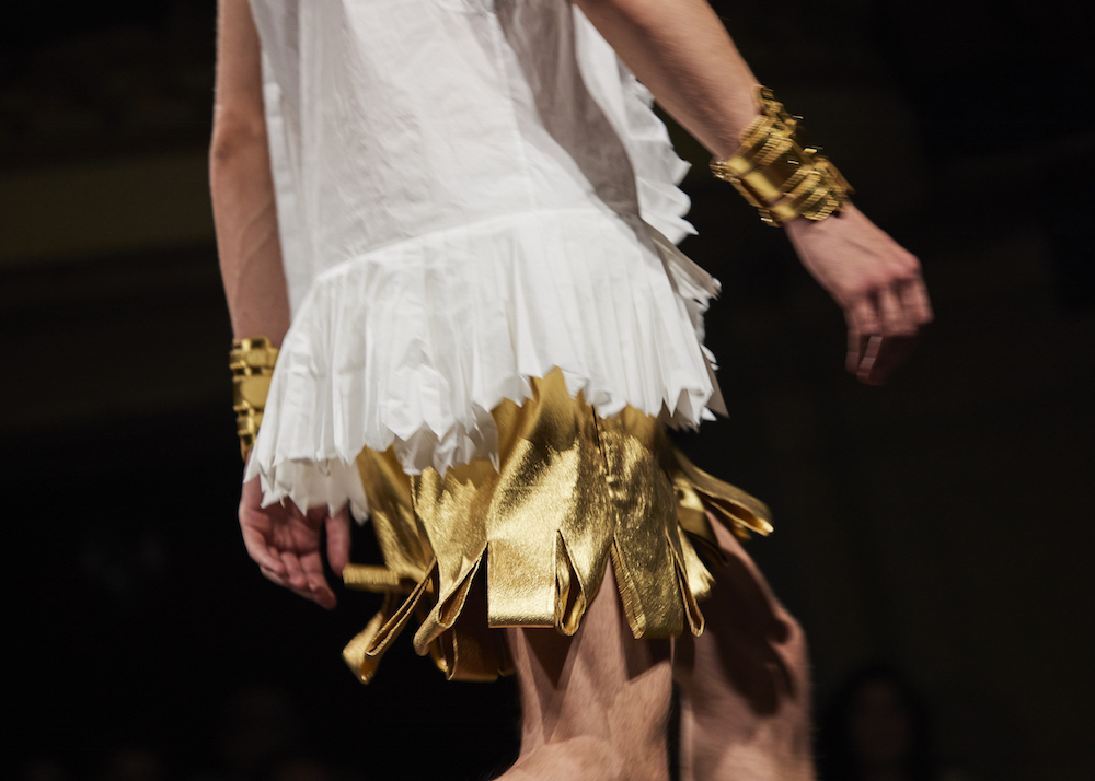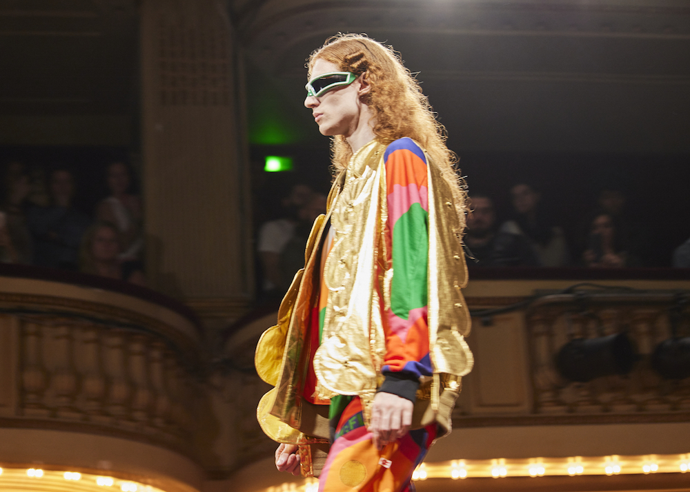 A Haute look at Beirendonck’s voluminous creativity and details flaunting the tailoring of UNISEX sportwear with attittude. Ruffled sleeves and all that GOLD were some of our favorite details..