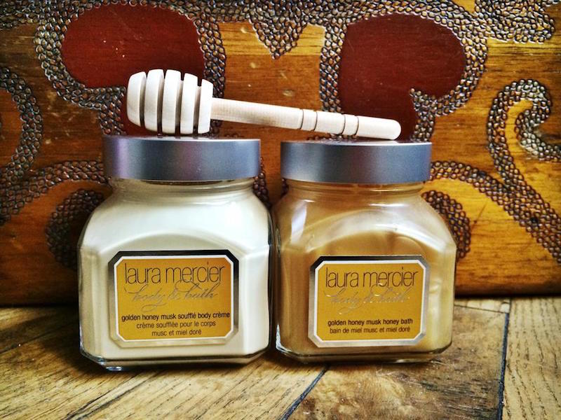 Body + Bath duet in Golden Honey Musk by Laura Mercier has addictive sweet honey aroma with hints of amber and sandalwood.
