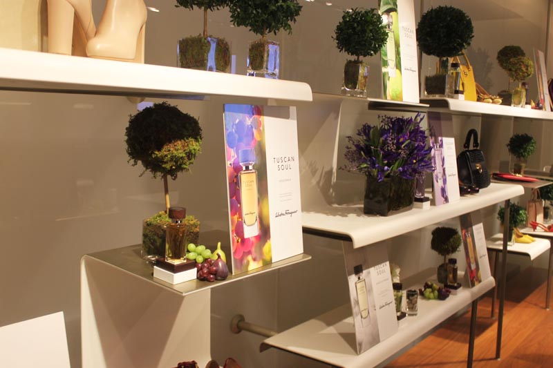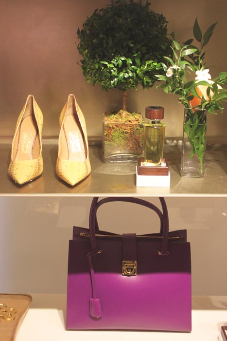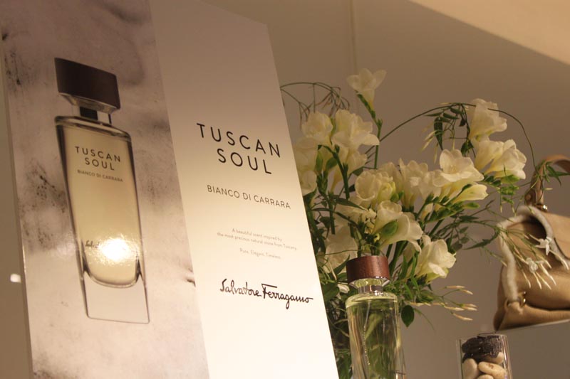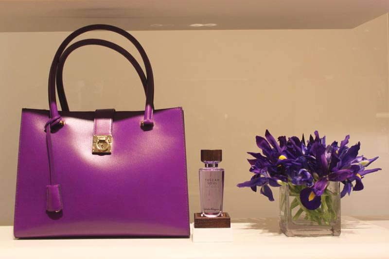 We have springtime on our minds…and in our perfumes. The fragrance masters at Salvatore Ferragamo recently held a special NYC launch of their array of Tuscan Soul scents: Bianco Di Carrara, Convivio, Vendemmia, and Viola Essenziale. All four are unique…all simply Ferragamo. Our editor [Brigitte] had the pleasure of attending the event, as each scent was adorned beautifully with matching accessories and accents throughout the space. This definitely ‘sprayed’ the midwinter blues away…a nice, scented shove of flavor.