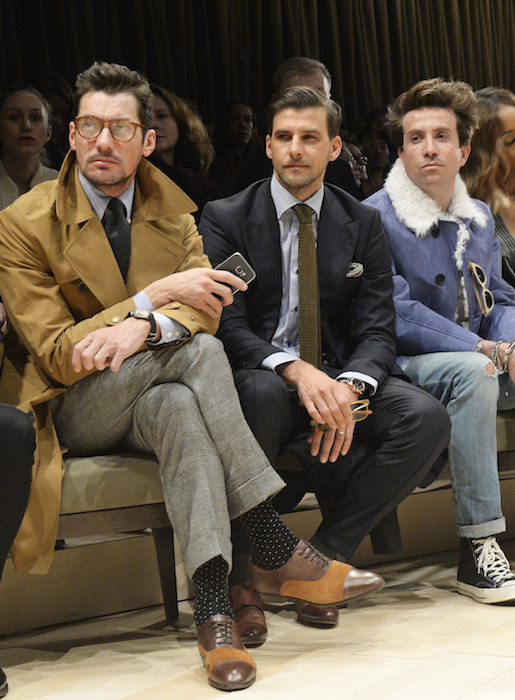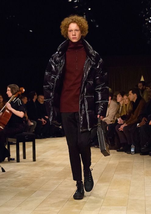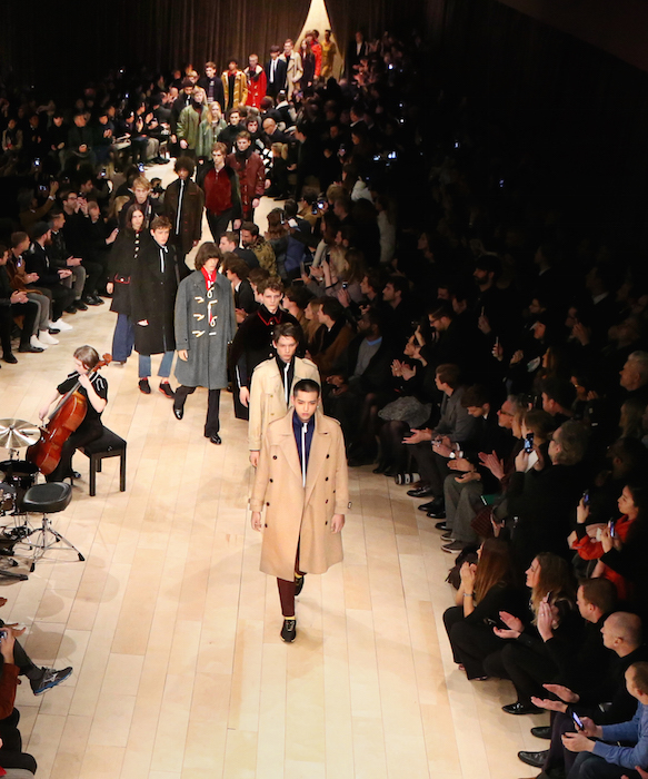 In acknowledgment of the news about David Bowie, several of the models wore glitter eye make up tributes in his honor. FRONT ROW at mens fw16 shows: Burberry commentary + selects by Brigitte Segura.