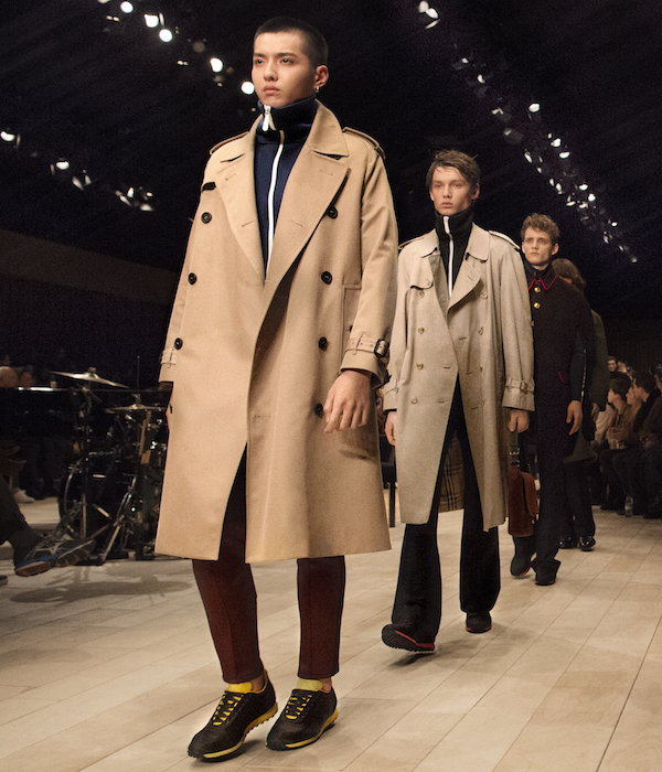 Silhouettes: Military coat, topcoat, cape, duffle coat, parka, trench coat, bomber jacket, puffer jacket, field jacket, flight jacket, tailored jacket, tracksuit, wide pant, polo shirt, blue jeans