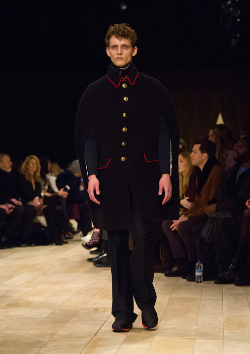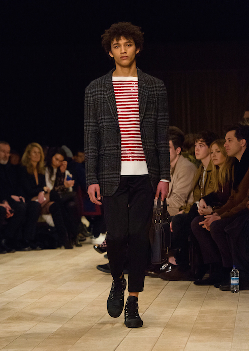 The show also included looks from the latest women’s Pre-Collection, which debuted in November 2015. the Textures and Fabrics on the runway included: Wool felt, double-faced cashmere checks, double splittable cashmere wool, wool mohair, wool tweed, cotton gabardine, washed denim, viscose jersey. Color range was in Navy, black, white, deep green, military green, military red, claret, purple, camel, mustard, grey, honey, blue.