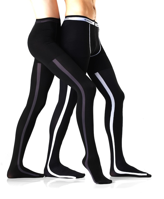The latest collection by Emilio Cavallini is innovative and edgy – the Cult Edition features pantyhose + mantyhose, yes you read that correctly, they are hose for men. The colors are dark for the guys, and the patterns are cool, though we admit the comfort fit waistband and seaming makes them not too far of a stretch from this season’s trendiest menswear item, the megging. Matchy sweetness: styles for both men and women like the Side Band Opaque and Grid Opaque tights which are little more demure. We liked going a little bolder with the bicycle print in black and white -why not.