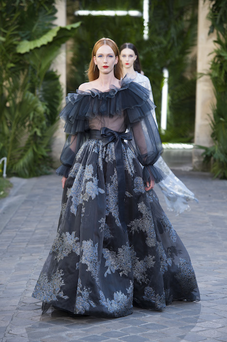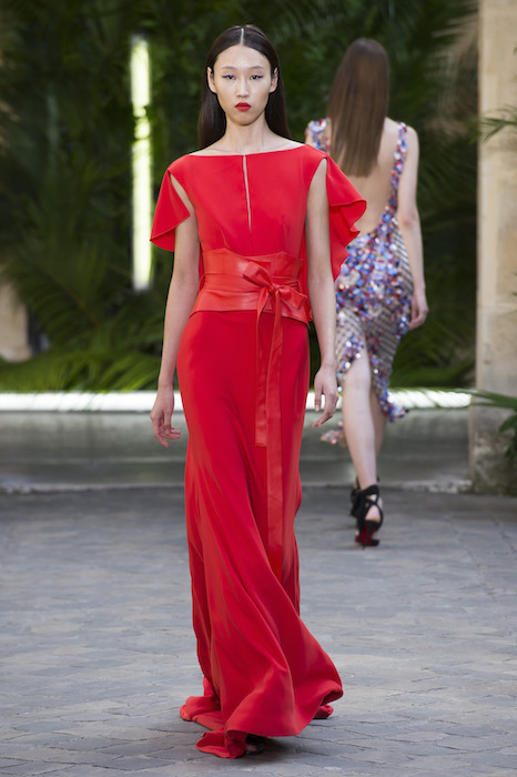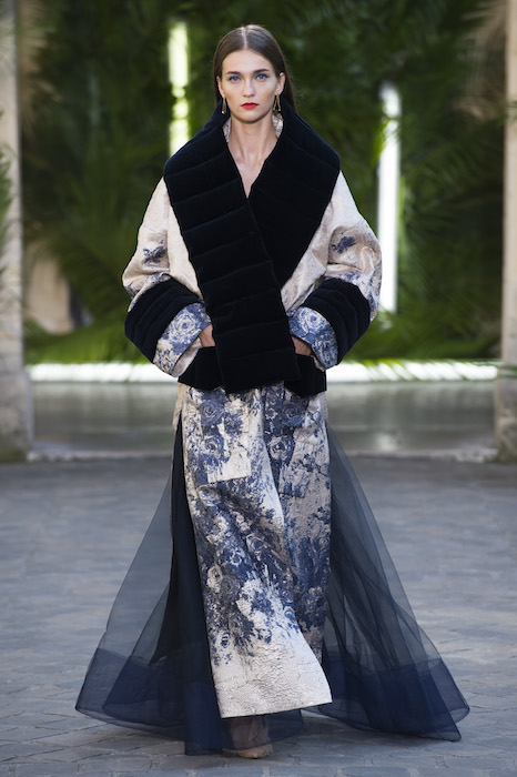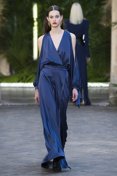 In a wonderland of feminine frocks, Galia Lahav mixes traditional eveningwear couture with innovative new techniques. A savoir-faire mix of elements drawn from the ‘elements of the sea and wonders of the earth.’ A couple of unconventional silhouettes include voluminous trousers and billowing sleeves to new takes on pleating. Deep blues with pops of poppy and touches of elemental metallics were some of my favorites.