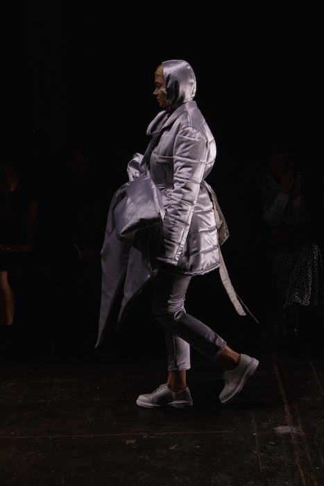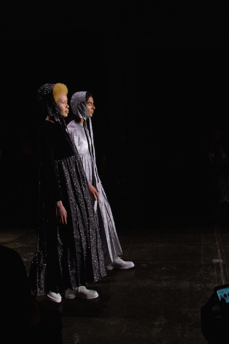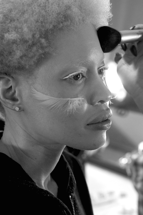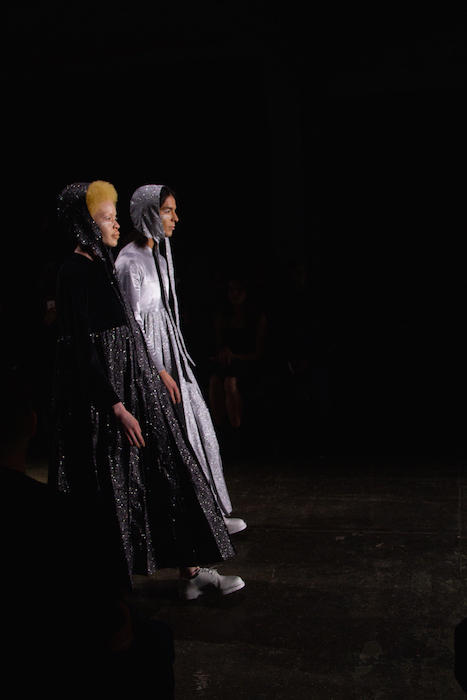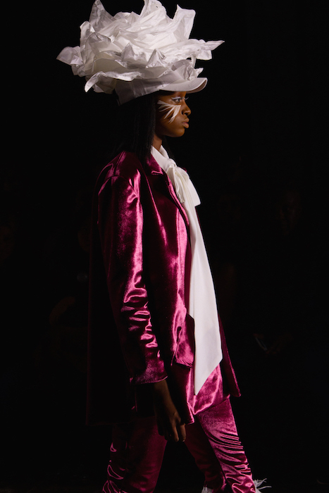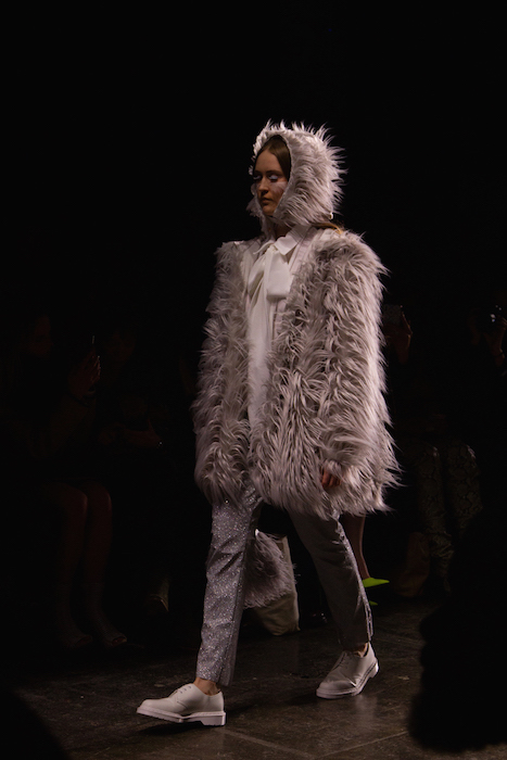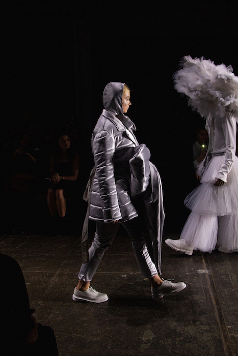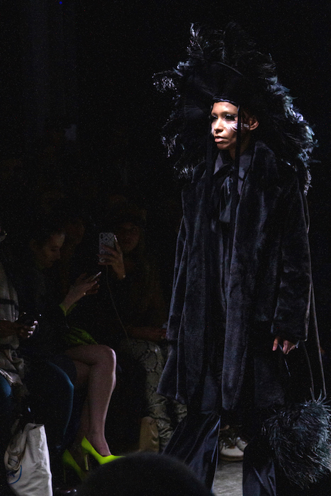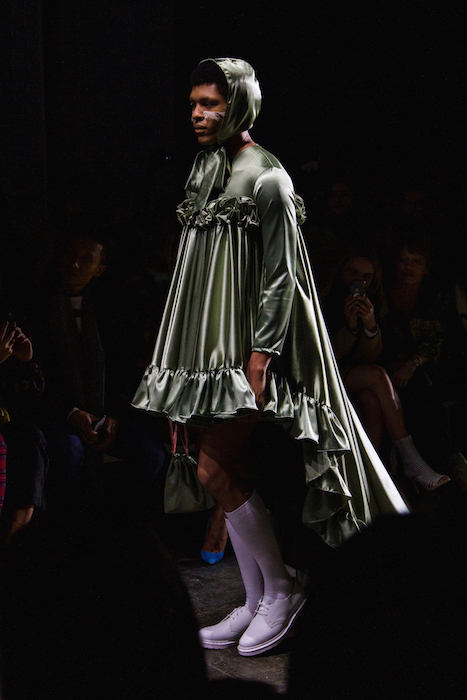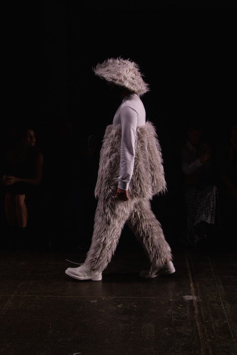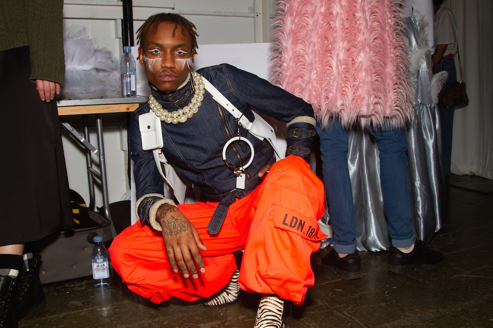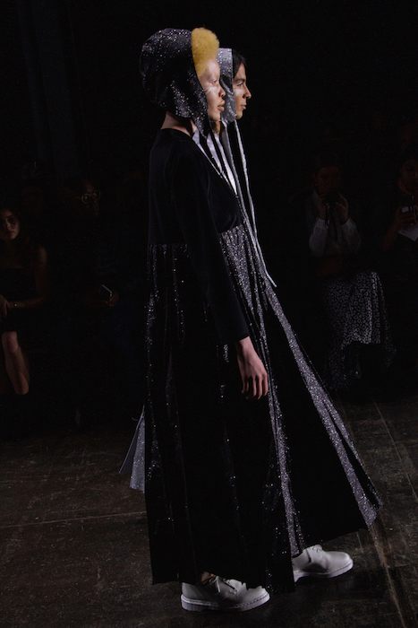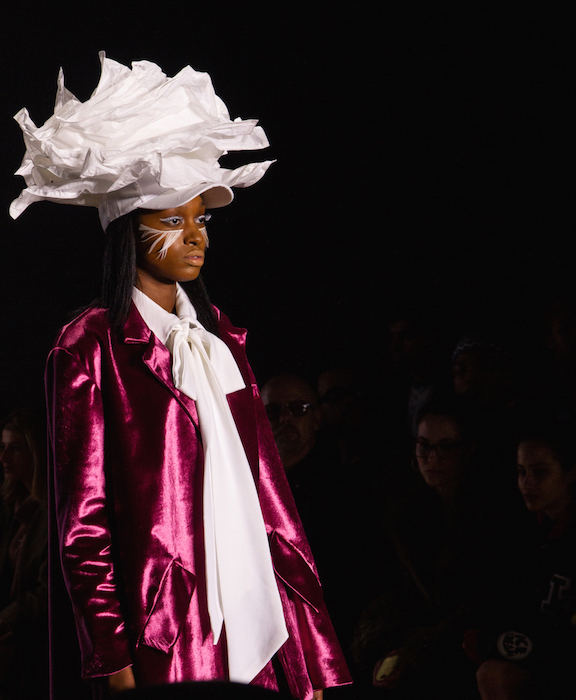 Highlights behind the scenes and frow. Young designer Allessandro Trincone flaunts genderless looks for Fall 2019 NYFW. A parade of Feathered, voluminous, and baby doll looks were fluttering on the catwalk in shades of pale.