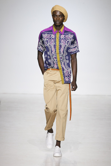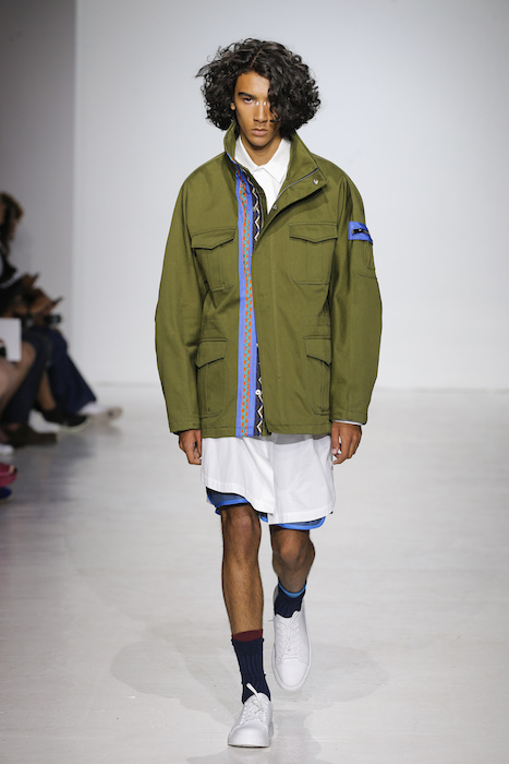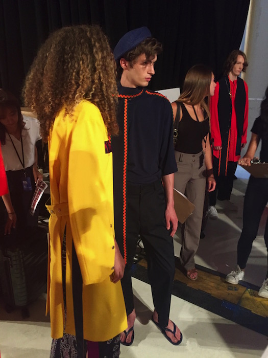 Girls + guys were flowing with lightweight striped trenches iphones in hand, and light layers of complimentary tones including lots of blues mixed with reds, and unusual combos for the brand with yellow and white, and royal purple making an appearance with khaki and red. A nice colorful presentation, including a newish vibe with a bandana print, with looks hitting the spot from casual to designer cool.