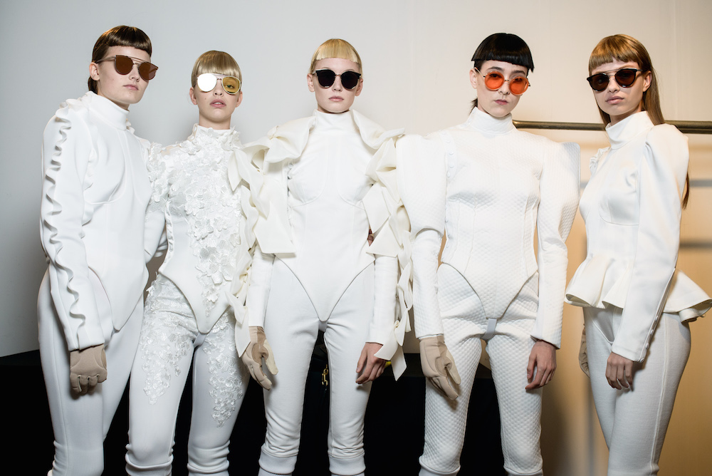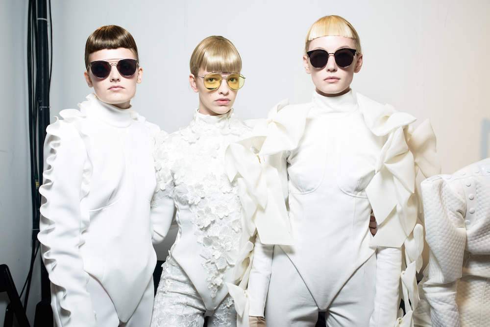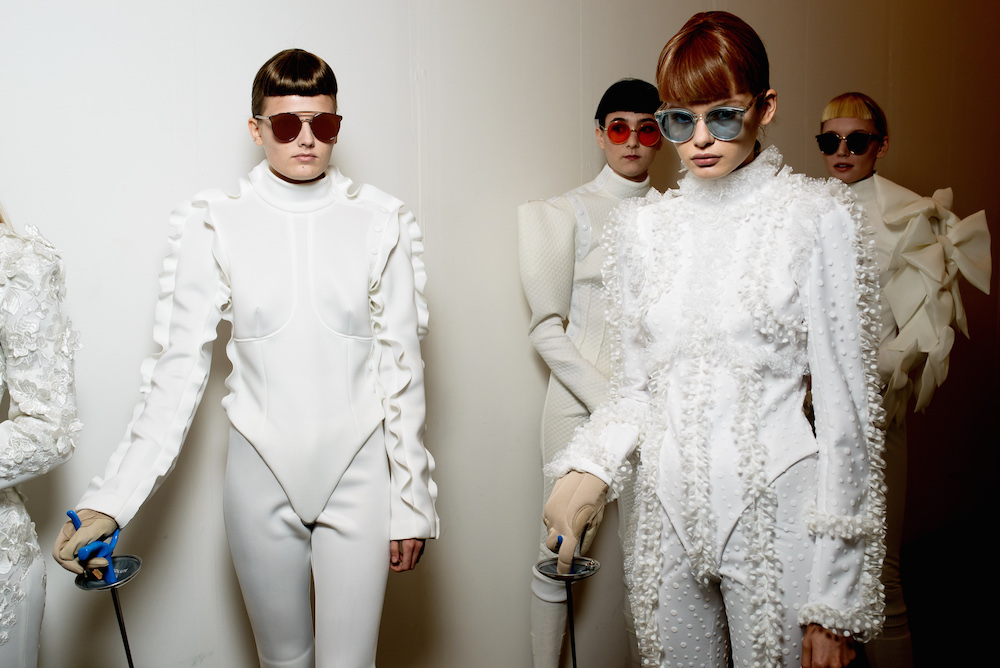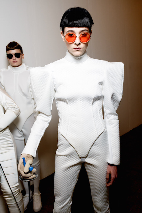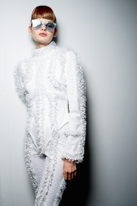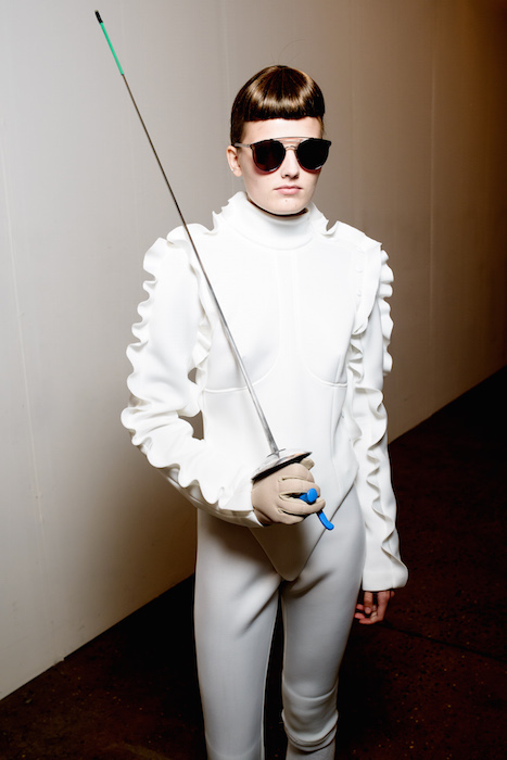 Taking a moment to flaunt some fantastic eyewear that was shown during NYFW. A choreographed performance by professional Olympic fencers in perfect hair and perfect sunnies ~ all in white of course. Here’s a view backstage and during the madefw presentation, captured by Paul Terrie for FashionDailyMag.