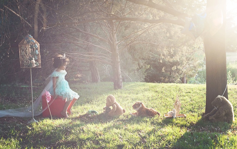 Georgina’s amazement with the special effects of this photograph are what inspired her to kick off her film with this picture. Sitting in a misty, mystical forest, a little girl is perched atop a makeshift throne while her stuffed animals, or commoners, watch her rule her make-believe land. This is the place Brittany Johnson established in her picture, “Her Throne was Magic” for Character. Good the quirky beauty of the scene grabbed Chapman’s attention before the other celebs got their hands on it ! The decay of ripped posters on a wooden pole showed Time slipping away for Georgina in “Too Many Shows to Show” by Brent Williams- making it a perfect fit for that section. The captivating colors in “The Long Walk” by Mike Marin, gained Chapman’s appeal for Setting. Maybe a kaleidoscope of hues will make its way onscreen ? “Discovering Limits” by David Saylor centered on a snail traveling across the water aboard a leaf, giving the designer an opportunity to focus on the minute details within the Discovery section. Titled “Predator,” the photograph by Misty Fugate definitely fits the bill- with a person grasping a forlorn doll by its feet in the middle of a unknown place. By selecting for Backstory Chapman believes the dark deceptiveness of Fugate’s pic will give her story more life by adding a new character. If her runway designs are any indication, Chapman’s film will surely bring beauty to the blockbusters. Written by Mary Anderson.