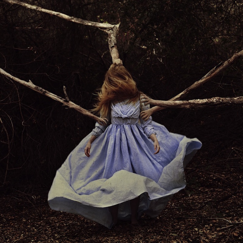Whether it’s a woman speechless at the top of a carnival ride, or a girl silently suspended in mid-air, Chapman’s photo selections easily evoke emotions just like her catwalk creations. For the Unknown category, she chose Kevin Vandivier’s “Too High” with a woman’s eye-popping expression while descending a roller-coaster really catching Chapman’s attention. “The Sharing Game” by Brooke Shaden for Obstacle inspires Chapman to consider multiple ways her narrative could turn. For Relationship she chose an eery black and white pic, titled “My Mom” by Patricia Whited. Georgina loved the mystery in the photo, since its depth could help in shaping her future character. A little girl gazing longingly at rows and rows of books is what Chapman chose for Goal. The “Determined” photograph is by Sal Rodriguez, and Georgina will not hesitate to incorporate the pic into her story. “Creep” by Jennifer Wall for Mood hides the face of the character, while her bare feet dangle dangerously above the floor.