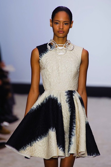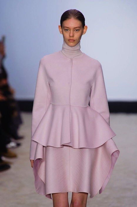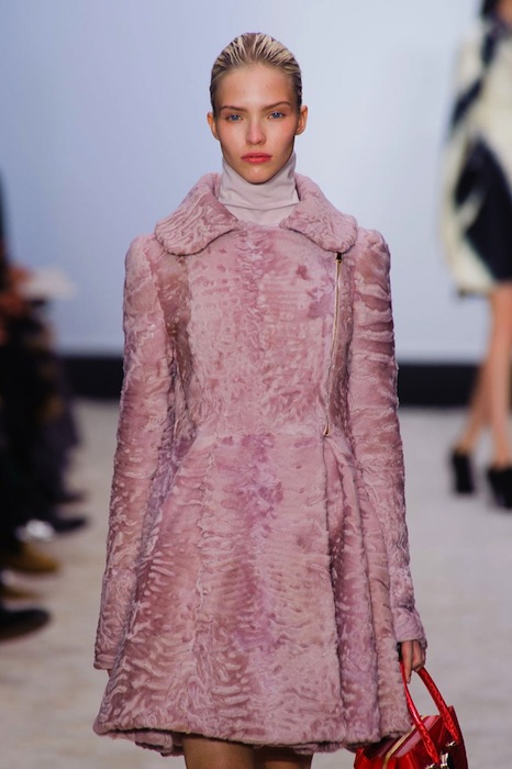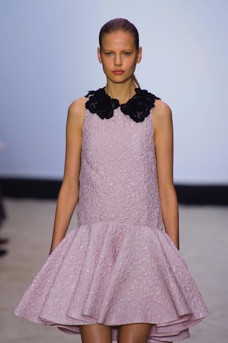 Perfect your pout and twirl, the Giambattsita Fall 2014 PFW collection is all about the girlish charm. Colors are reminiscent of Valentines and silhouettes are fully embracing femininity. In fact, there’s not a single pair of pants in this set…everything hits just above the knee. Sure, that’s a bold undertaking but this designer gets dresses. These are especially ones to party and flirt in. Too cute. Appearances by Sasha Luss, Malaika Firth and Julia Nobis amplify the already lineup.