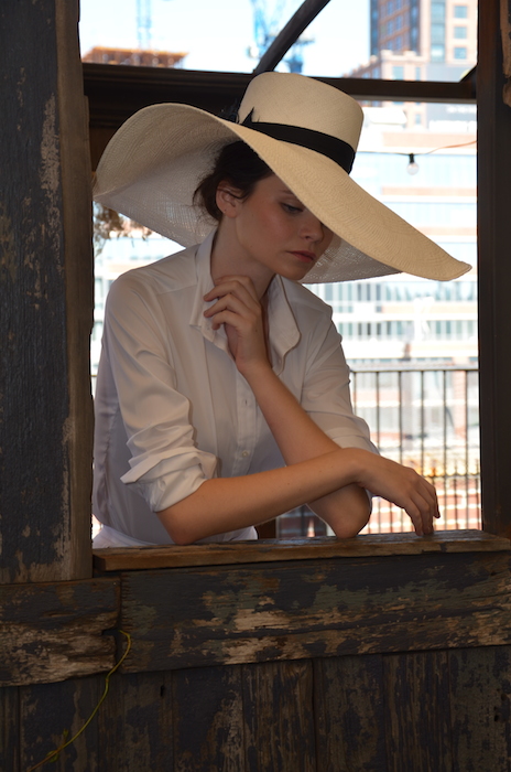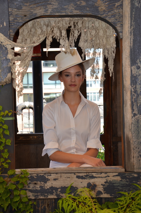 On a rooftop on a sunny day at Gallow Green – a perfect setting for girls in hats. Andrew got a glimpse of the smiling “it” girls and orchestrated an impromptu editorial amongst the greenery during the presentation. Here’s a sneak peak of GIGI BURRIS and Andrew’s fab view of Chelsea Leyland and Ashley Smith (sporting a GIGI BURRIS fall 2014 crown). more to come!