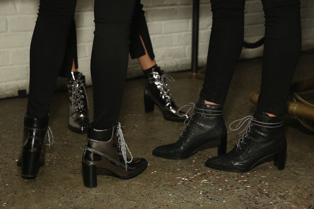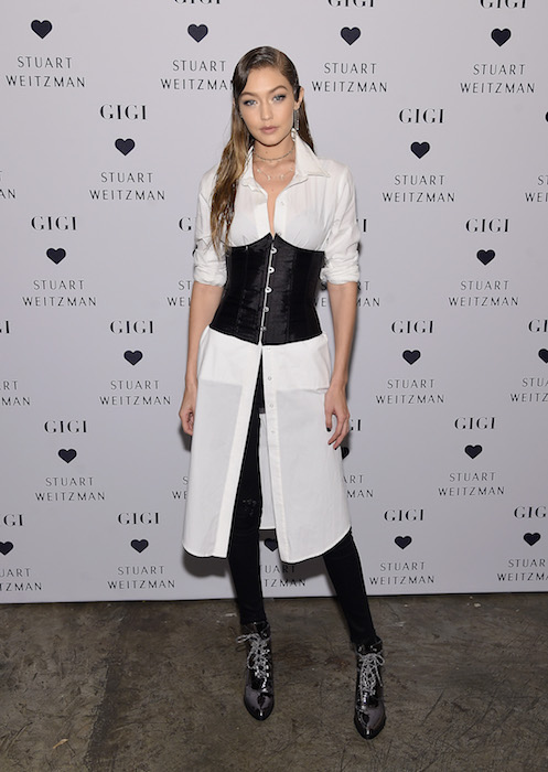 Catching up: Continuing the GIGI HADID craze, Stuart Weitzman has collaborated with Gigi on the Gigi boot. The ‘social supermodel’ gave a little design input in the making of the hiker-inspired high heel combat bootie. The hot walkable boot has metallic eyelets and comes in 3 materials- 2 of which have a shine, of course!