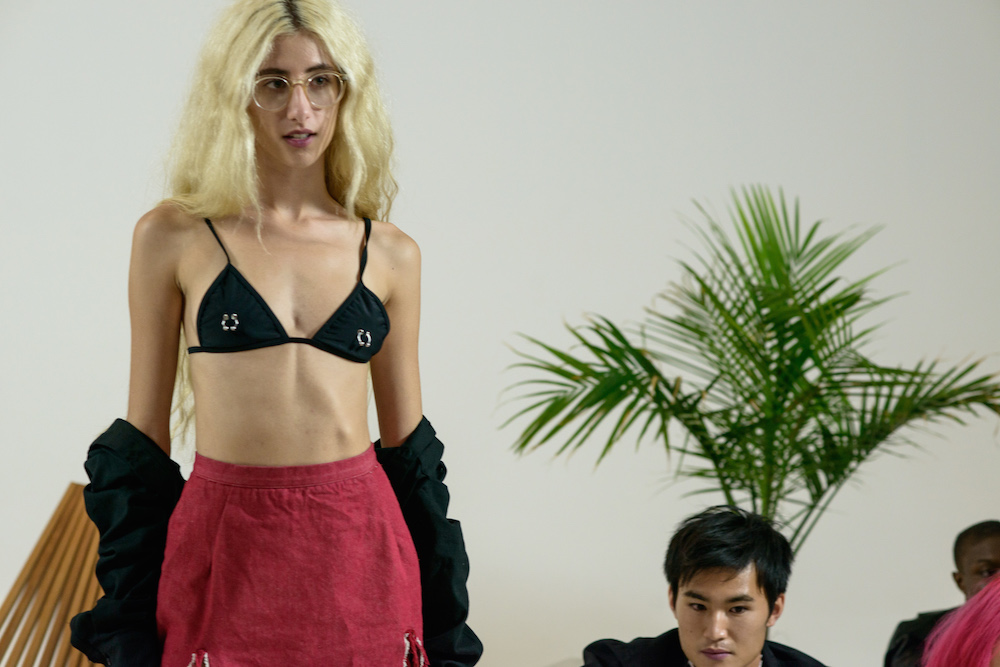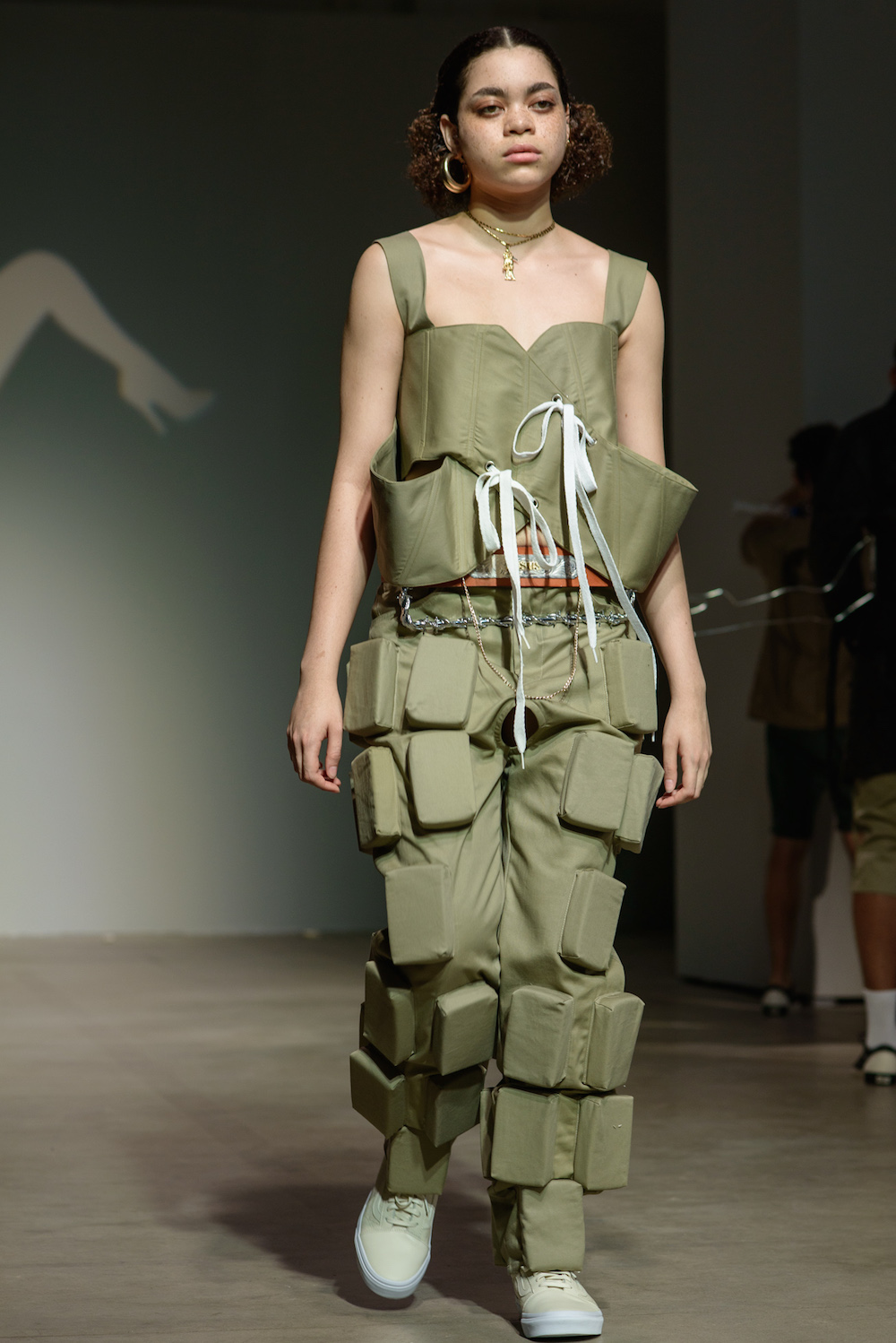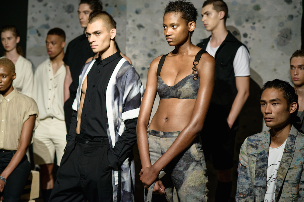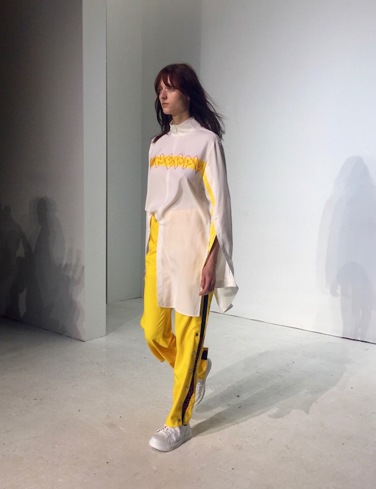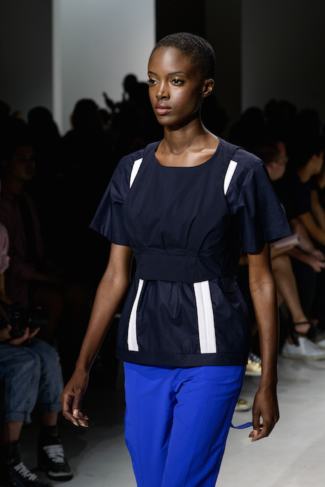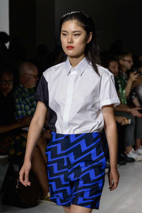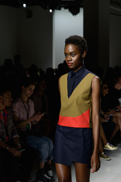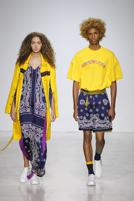 Another brand that made an beautiful collection that was created for men and women was GENERAL IDEA. This was perhaps one of the only designers that took into consideration the aesthetic of females and males in union, complimenting one another and in a positive light. Of course walking down the catwalk with golden boy and sweet spirited Michael Lockley can give a smile to any girl’s walk, but the girls genuinely looked like they flowed well and liked what they were wearing. So is this the beginning of a unisex union? This Korean designer made look like a perfect patterned union.