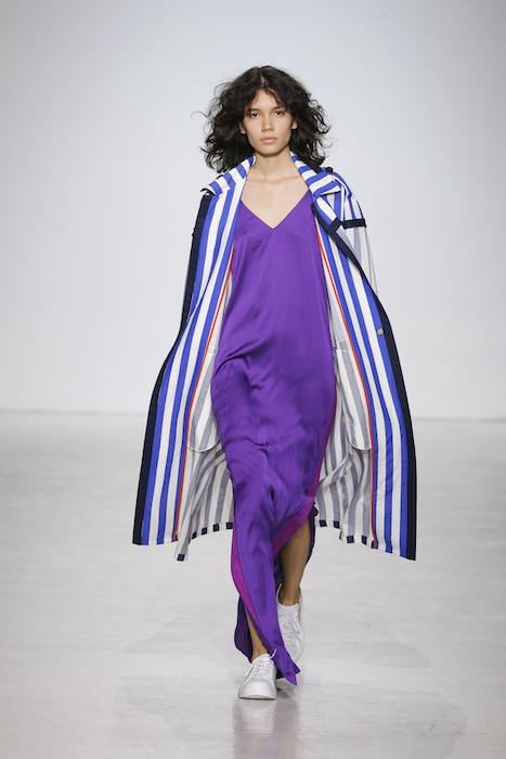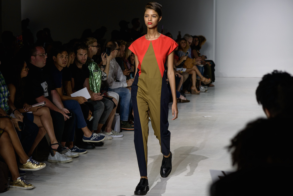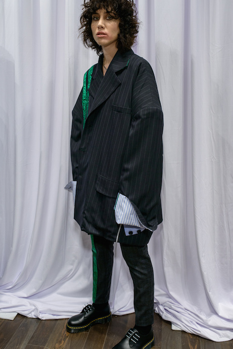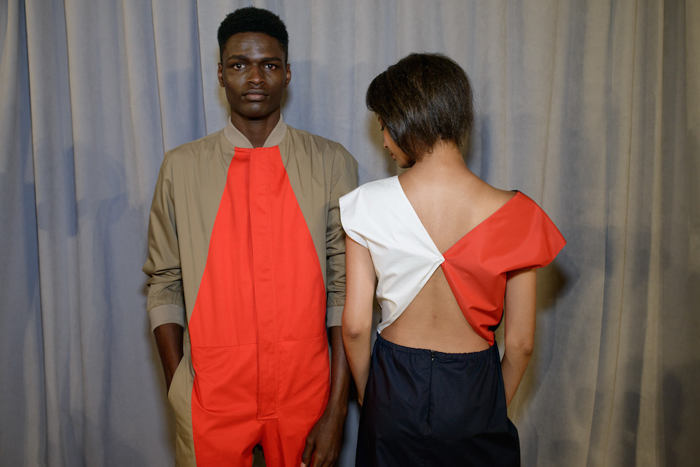 One designer that really made an effort to give a girl X boy complimentary combo was Carlos Campos Menswear. The color blocks and pieces were designed with a menswear perspective, created for a woman. And though the meticulous detailing in Campos style is evident, the drape could have used a little extra flattery for a woman.