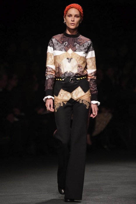 An awe inspiring showing at Givenchy for Fall 2013. Maximum cool for the reliably chic as dreamed up by designer Riccardo Tisci, who has been at the creative helm for the label over the last eight seasons. The choice of venue, Halle Freyssinet, had a warehouse vibe with attendees circled up with bright lights shining… The very fabulous front row club included Jessica Chastain, Frank Ocean, Mario Testino, Ciara, Kanye West, Nicole Richie and Carine Roitfeld.