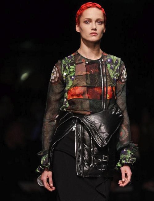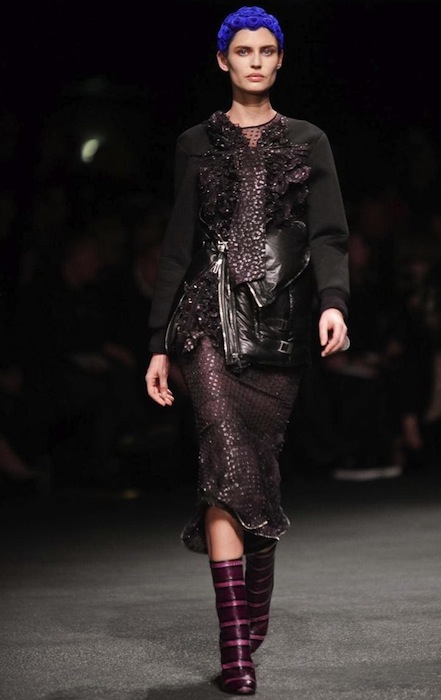 Longtime friend of the designer Antony Hegarty, of Antony and the Johnsons, performed three songs that hit close to home fusing now & then for fashions that impress with ease. So it was a little grunge meets pop art a la plaids and leathers with Disney imagery… wha? No really it was an edgy delivery that was absolutely awesome. Cinched waists and sheer skirts added a certain sensuality to the forms as floral prints infused a distinct femininity. Moto moments with hard lines exposed when split and added dimension when unzipped and folded over.