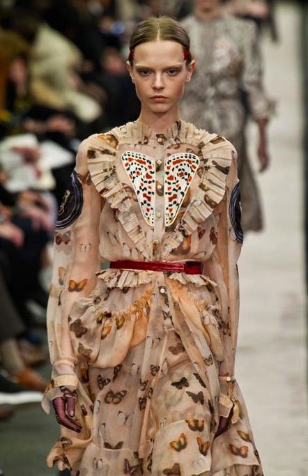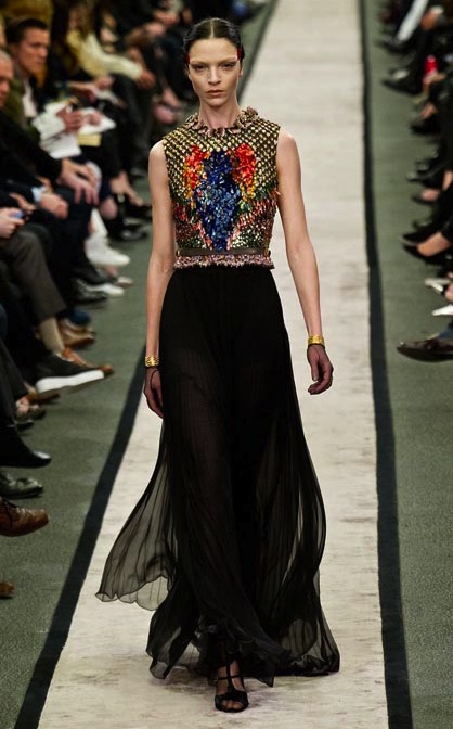Ah, romanticism is alive and well. The Givenchy Fall 2014 PFW collection is simply beautiful. Designer Riccardo Tisci presented whimsical silhouettes and gorgeous pieces with graceful flow. It’s a Euro-centric set that has us swept off our feet. Who wouldn’t want to flit around Paris in one of these looks? This girl has us hooked. During the show, model appearances included Stella Tennant, Joan Smalls, Kaisa Struss, and Kendall Jenner. Yes, one of the Kardashians is doing runway…fancy that!