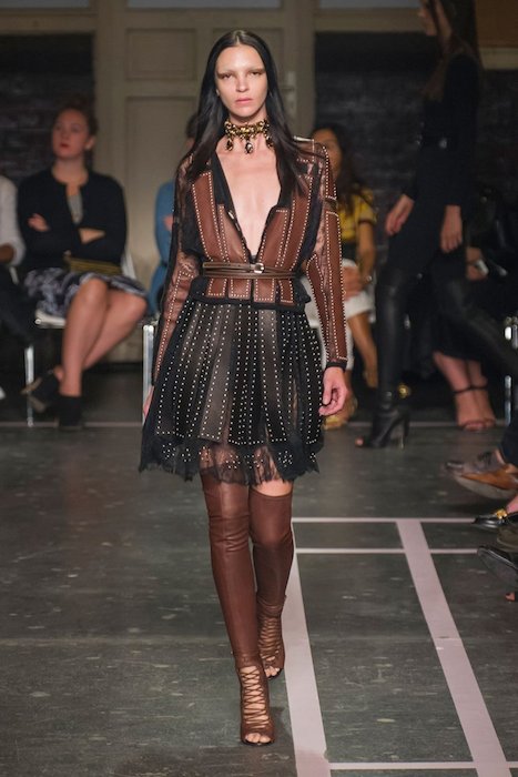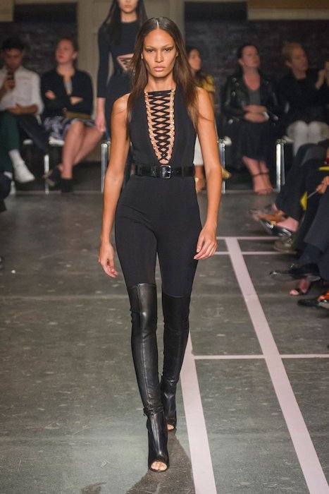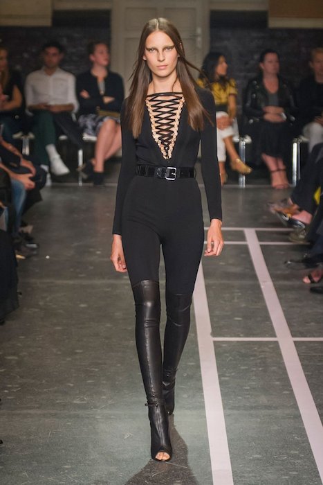 Shouldn’t every woman feel fierce and less delicate sometimes? Givenchy’s RTW Spring | Summer 2015 collection hit PFW with a kick of sensuality (and a taste of dominatrix). Master of sexy, designer Riccardo Tisci fused our love for the simple palettes of black, white, and brown with a perfect touch of go-go disco meets modern female super hero.