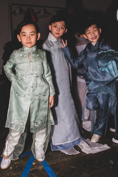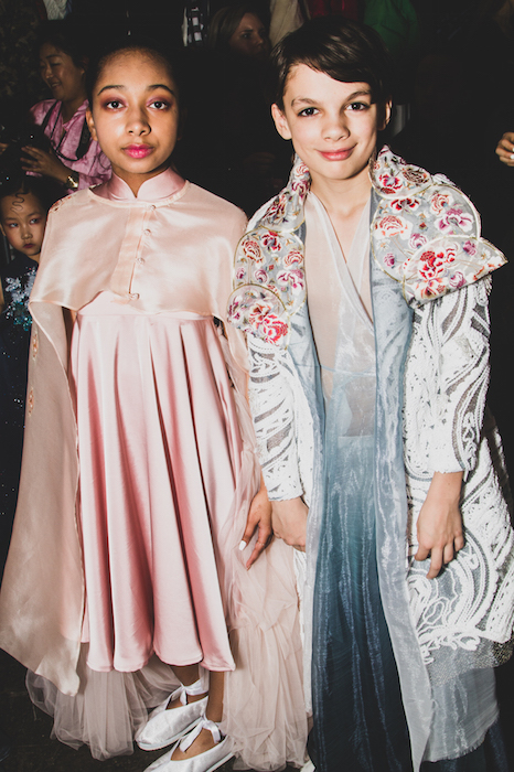 Flowing pieces come in children’s sizes: Presented by Global Fashion Collective, Sun-Cun presented precious childrenswear on the NYFW catwalk for fall 2019. Delicate embroideries and flowing layers for the girls and traditional yet forward attire on the handsome young men. Combined with womenswear, here are some of my fave looks from the runway and moments behind the scenes. Sweetness!