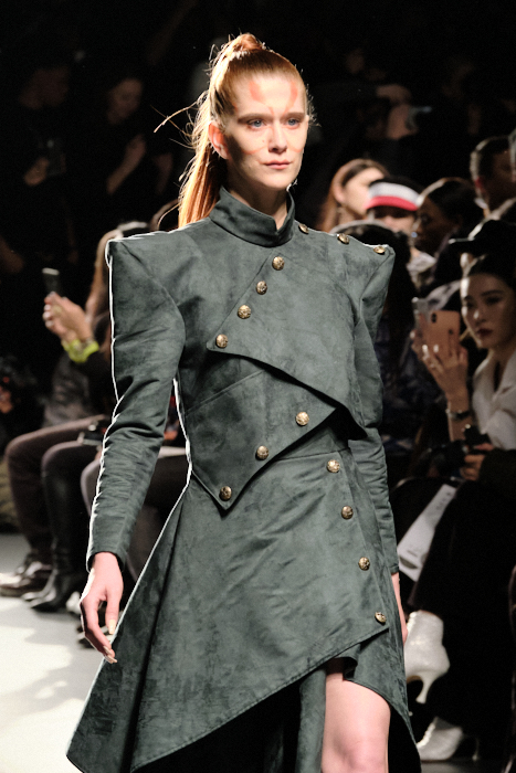 Arlo Studio showed streetwear inspired pieces, while Designer Shun Oyama wowed us with textural jacquards and military details that took us back to another era. Gigi Wang gave a jolt of color and style mixing modern with traditional references, and Alicia Perillo used pattern play to enhance all sizes.