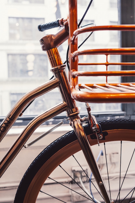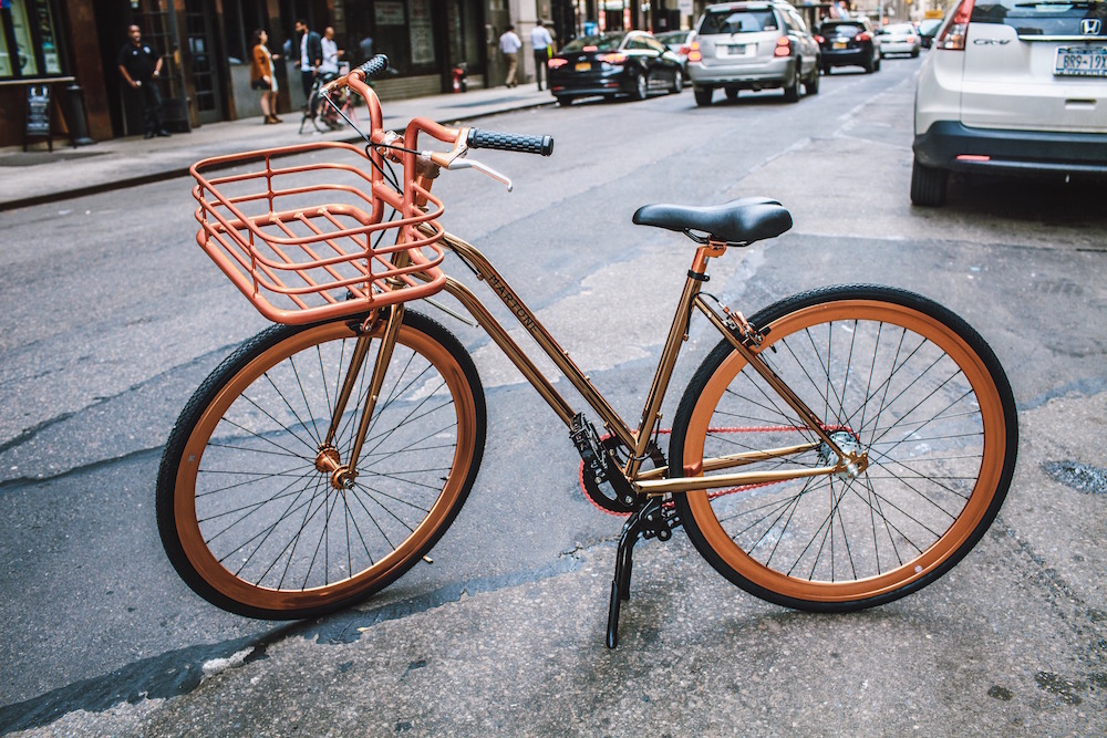 Yes well, if you’re going to cycle, it may as well be in gold-dazzled this season. Keeping it fresh, Martone Cycling offers it up in rose gold. Perfect for my rosé + gold lovin’ crowd, the limited-edition “STUDIO CITY” bicycle for 2017 is making its debut with a special installation at Saks Wellery.