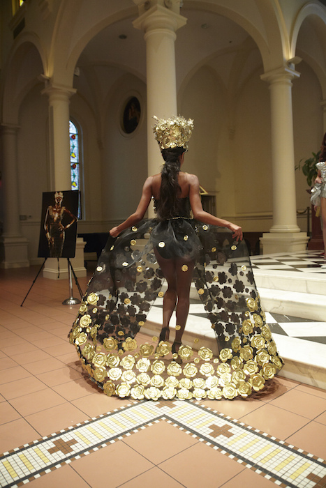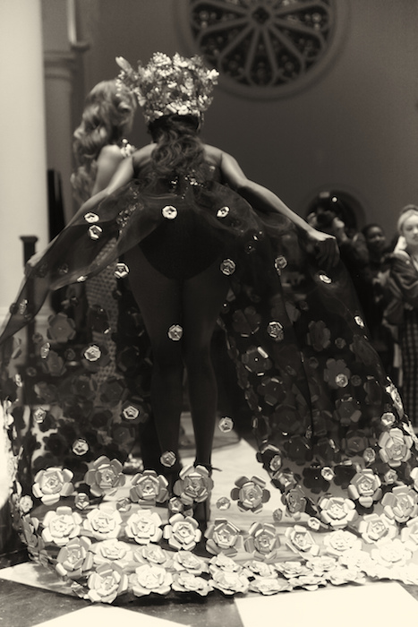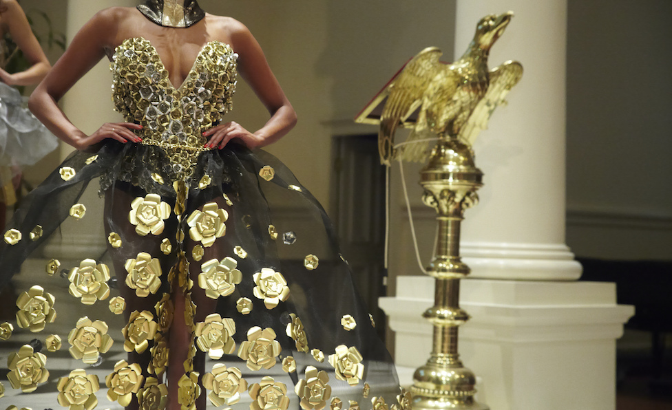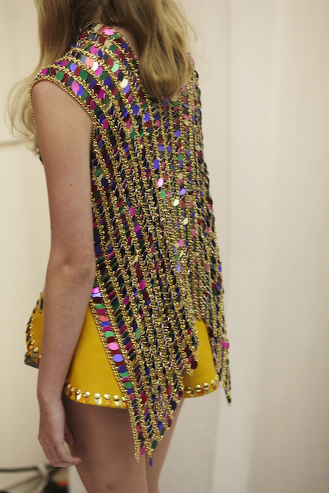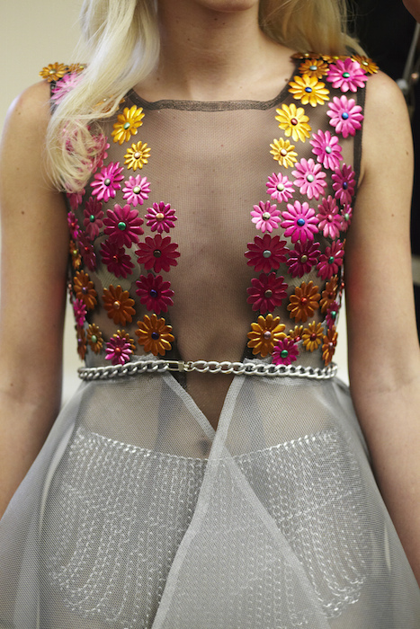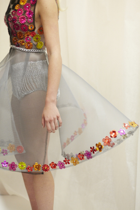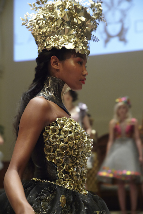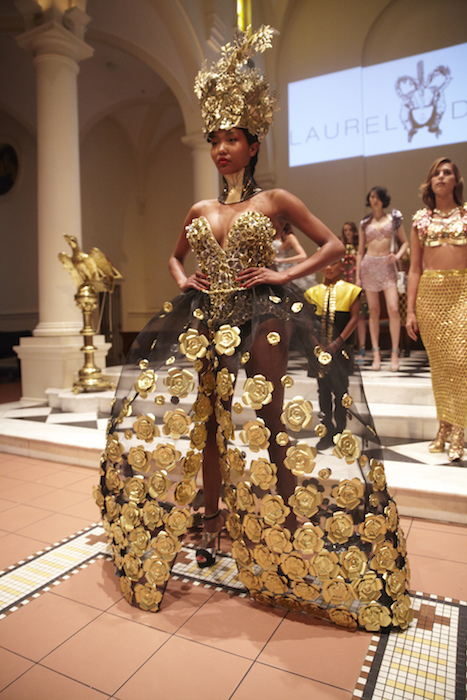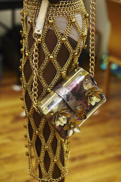 Ready for a performance… sparkle, gold, chains and multicolour! LAUREL DEWITT took the chain mail edge to a softer, sweeter romance for ss16. Adding sheer fabrics with sheen to complement metallic flowers in gold + multi color, the softened silhouettes are made to flaunt the entrance and werk a performance.
