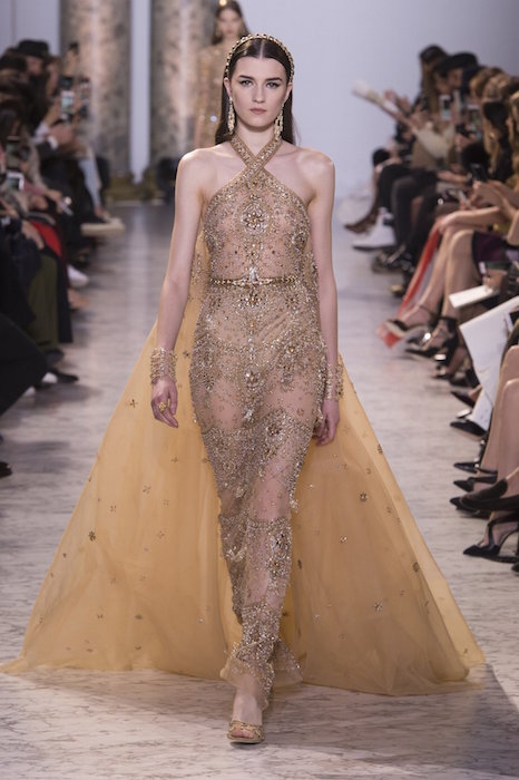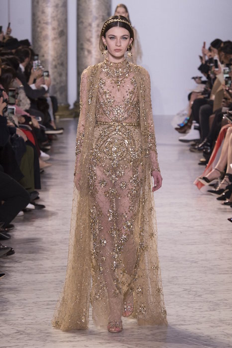 Here are a few of the so many pretty gold dresses with lace + sparkled + glittery gowns from Elie Saab, Giambattista Valli, Zuhair Murad and Ralph and Russo and a few others.
