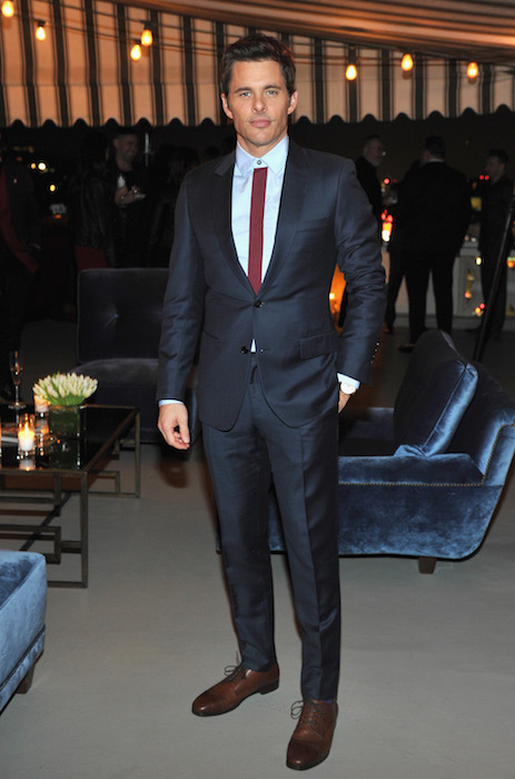 James Marsden wore a Dior Homme blue wool notch lapel suit.