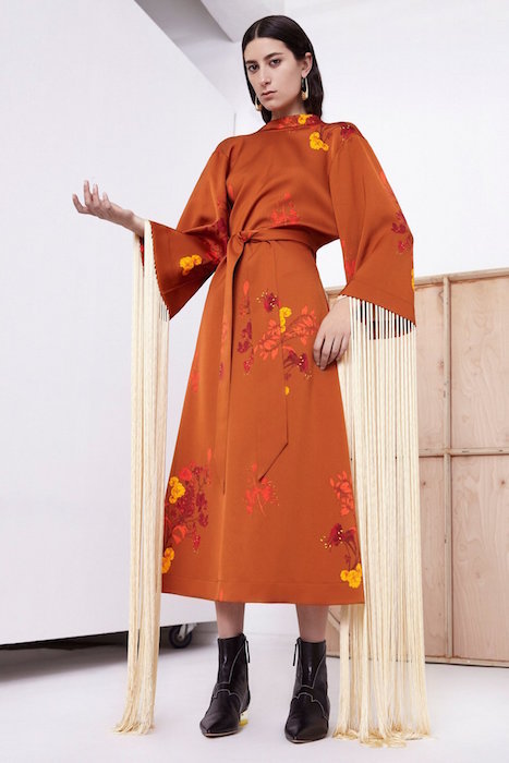 I can finally see something green I’d want to wear! The wide legged pants and ruched dress at resort 2018 are on my must have list for now. More faves are fringed, rusty and very glossy – mostly belled, of course.