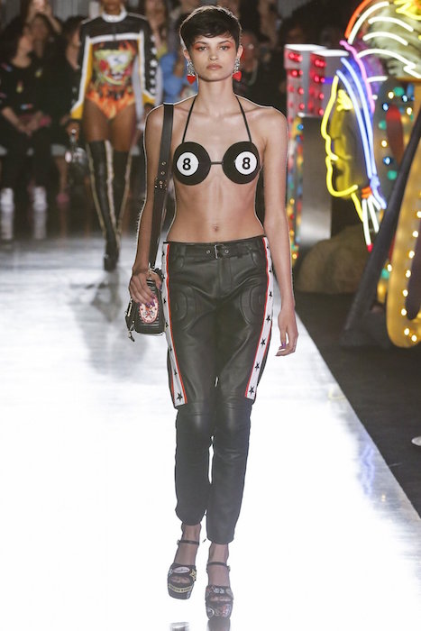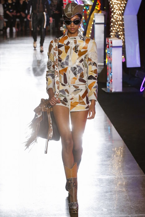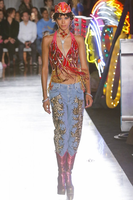 EYES on the hauteness! With a fun mood on sparkled flames, Jeremy Scott brings us a multicolor flavor and ‘tude for MOSCHINO resort 2018 + Menswear at Made LA. A few cowboys tossed in with the girls, the sparkled parade of babes included Joan Smalls, Miranda Kerr, and pink-haired Fernanda Ly !