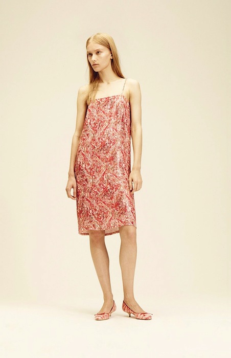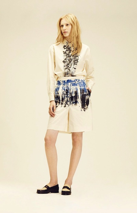 Abstract prints in black and whites, pinks, blues, and reds, were a fresh breakaway from the typical floral offerings this season. Jolts of neon hues on hand-painted goatskin handbags accented the lighter than air looks. Cotton, fringe, macrame, lace of St. Gallen, and sequins were just the beginning of the collection’s embellishments and fabrications, yet Maier stopped it from being overwhelming by keeping the simple shape. Youthful sass was added to the class, by matching knee-length sheath dresses to the footwear. Although, if the technicolor touches aren’t for you, there’s plenty of earth tones and solids. These pieces were still as enticing with thigh-baring tailored shorts and structured wrap-dresses for revamped basics. Whether you’re a beach babe or a boardroom boss, this resort 2014 collection will help you make a lasting impression. Bottega Veneta Resort 2014 selects by Brigitte Segura, written by Mary Anderson.
