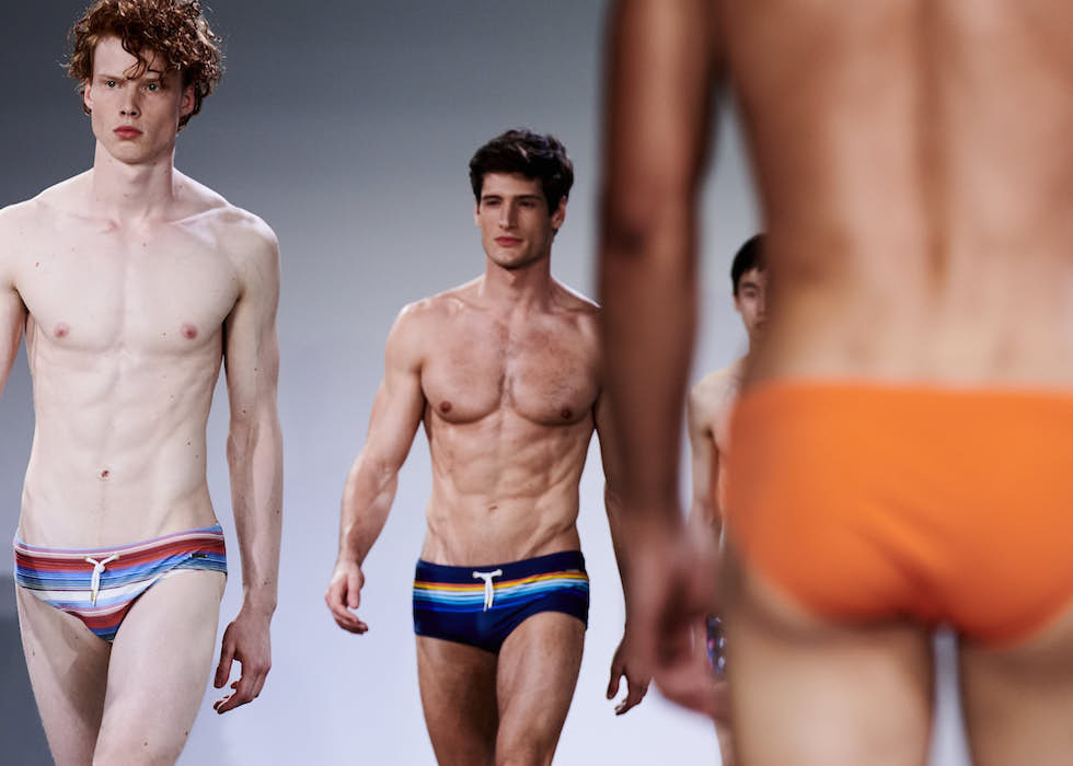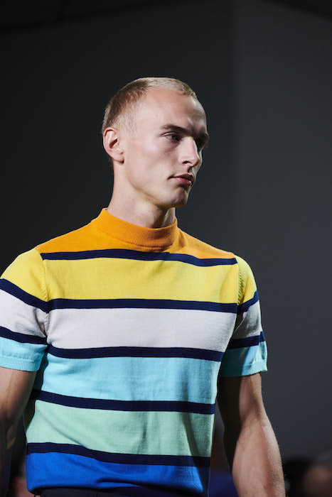 It’s haute alright. Sizzling swimwear for dudes in the PARKE AND RONEN happy patterned tradition. More summer gear in stripes (favorite) rainbow sweater, surf and skate. Backstage vibes and summer friendly smiles, PARKE AND RONEN SS19 nyfw:m. Here’s a look at fave details and moments backstage.