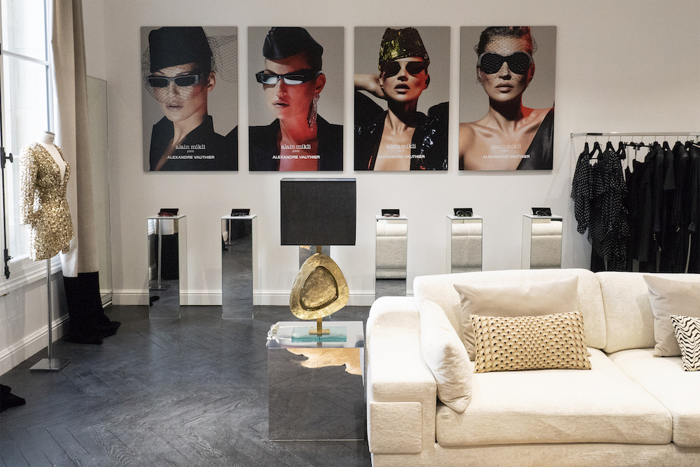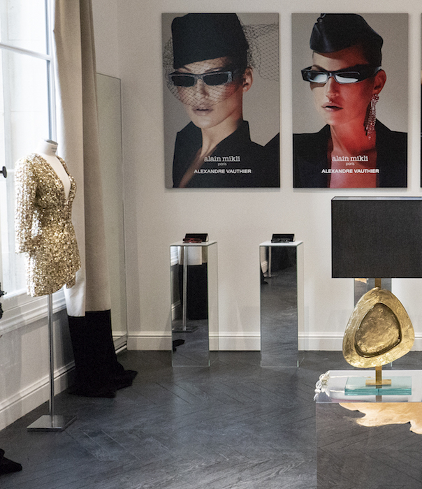 check out Kate Moss on the wall in the Alain Mikli x Alexandre Vauthier Eyewear Collection and the Hot Haute Couture Fall Winter 2018-19 Metallic Boots, RYDEANYWAYS x Alexandre Vauthier Skateboards, and some hot sweatshirts..