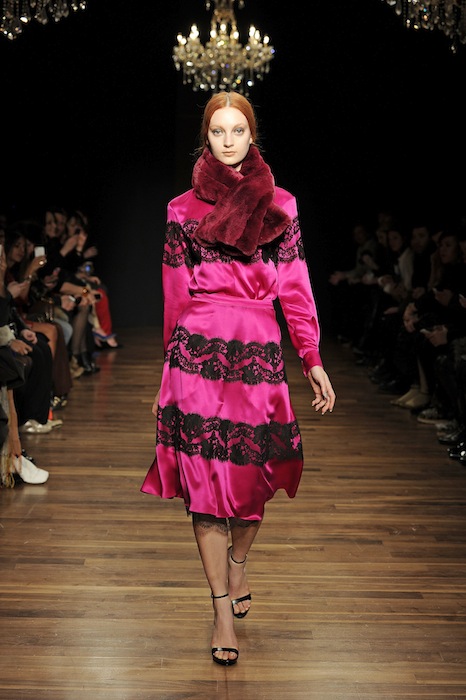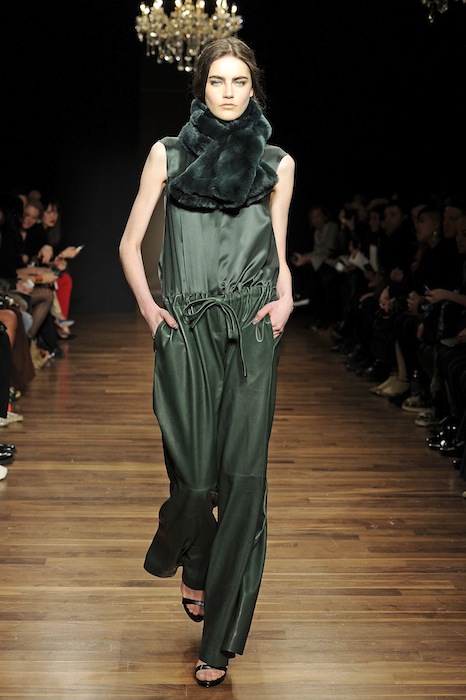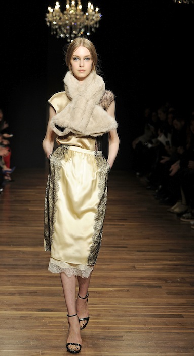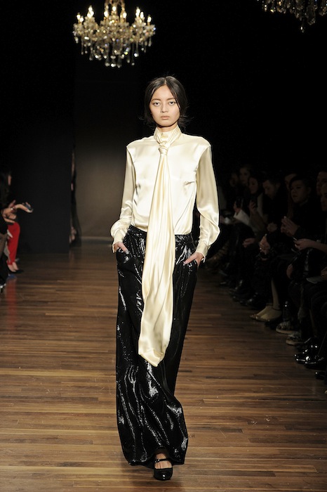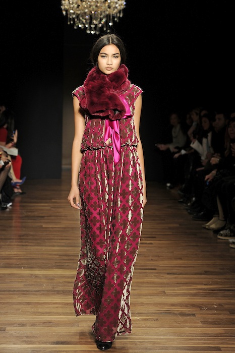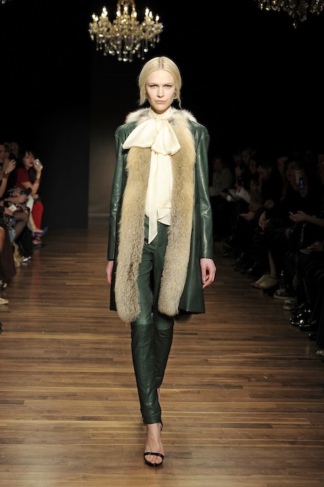 Houghton gave us luxurious eye candy for the Fall Winter 2013 Collection shown at the STANDARD during New York Fashion Week. Designer Young designer Katharine Polk was inspired by the likes of stylish women such as Bianca Jagger and Patti Smith, so we weren’t surprised when we saw a variety of luxe fabrics including leathers and velvets overlaid with feathers to go with the silks and lace.