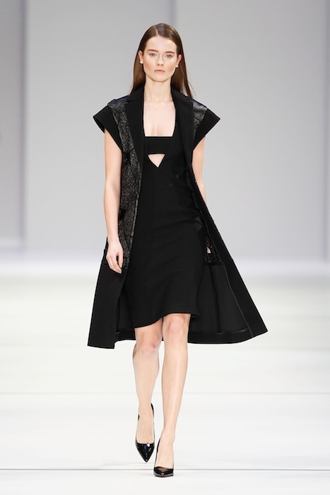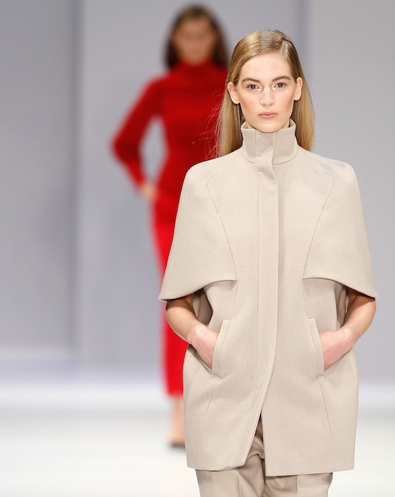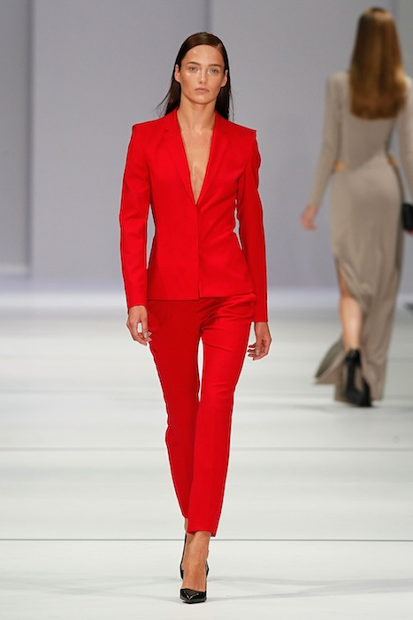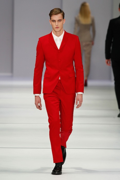 Hugo by Hugo Boss kept true to their sharp silhouettes for aw 2013-14 at Mercedes-Benz Fashion Week Berlin. Titled “Reflection” the collection made time stand still through its focus on a series of contrast such as “past and future” that was visually embodied in severe and strong looks. Head-to-toe hot red hues created an eye-catching effect for a viewing enjoyment. The gazes of Clement Chabernaud and Hanne Gabby Odiele combined with the chic Boss designs created an overall look powerful enough to stop traffic effortlessly.