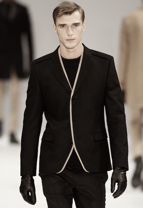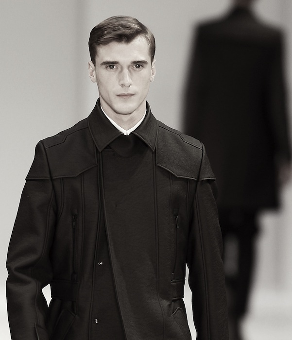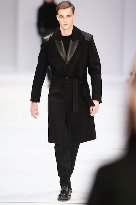 Deep v-necks were contrasted with high-necklines; with turtlenecks for girls while layered underneath heavier fabrics for guys. Breaking up the basics with pops of color- think in-your-face reds and bold black-created a vivid spectrum for autumn/winter. Don’t take our word for it-see Kasia Struss in a powerful crimson dress. Mixing the mens and womens looks together added an androgynous touch to the collection; making chic interchangeable. Textiles in a range of metallics and muted hues played with each other seamlessly-giving even more reason to stand out.